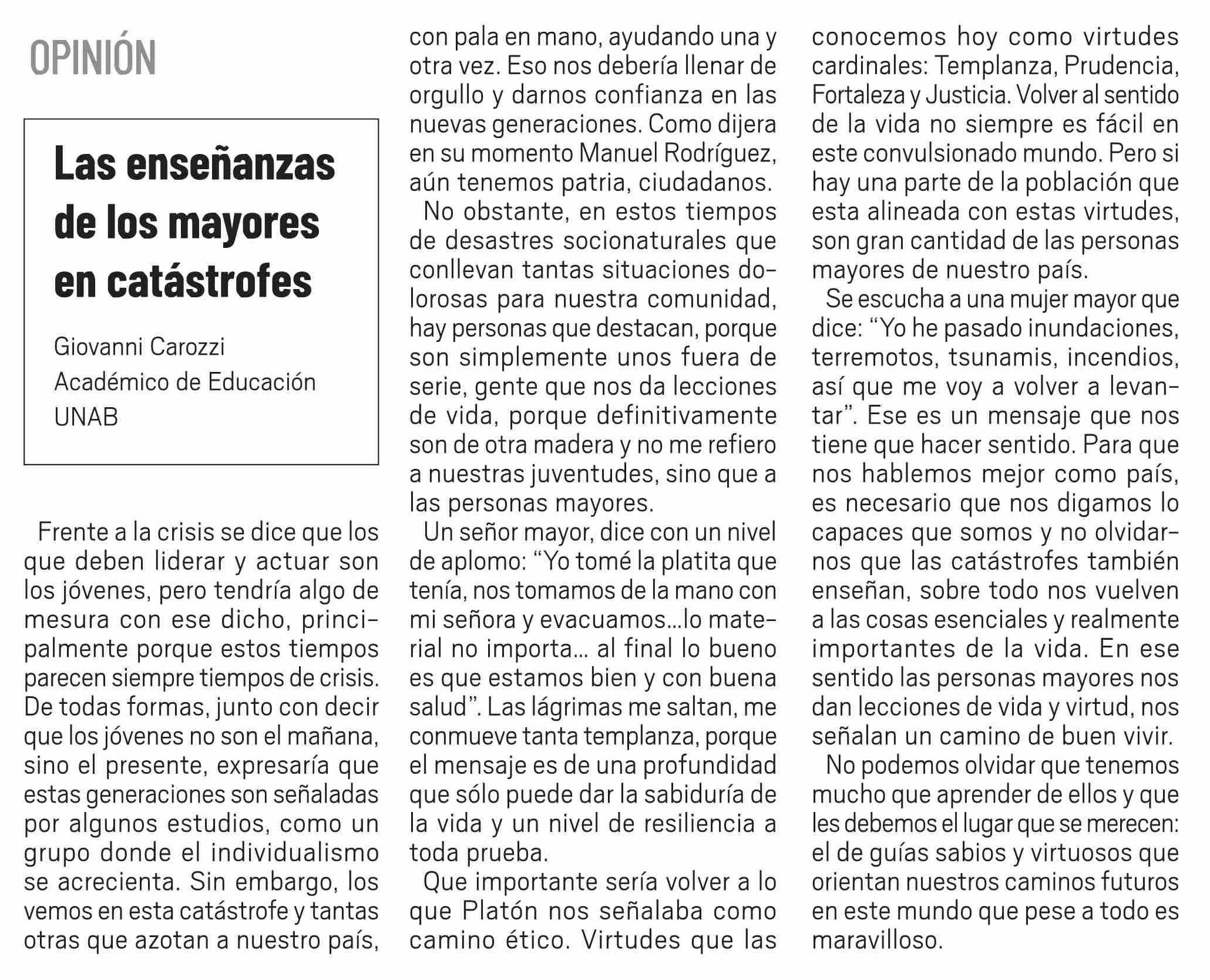 | Título: | Columnas de Opinión: Las enseñanzas de los mayores en catástrofes |