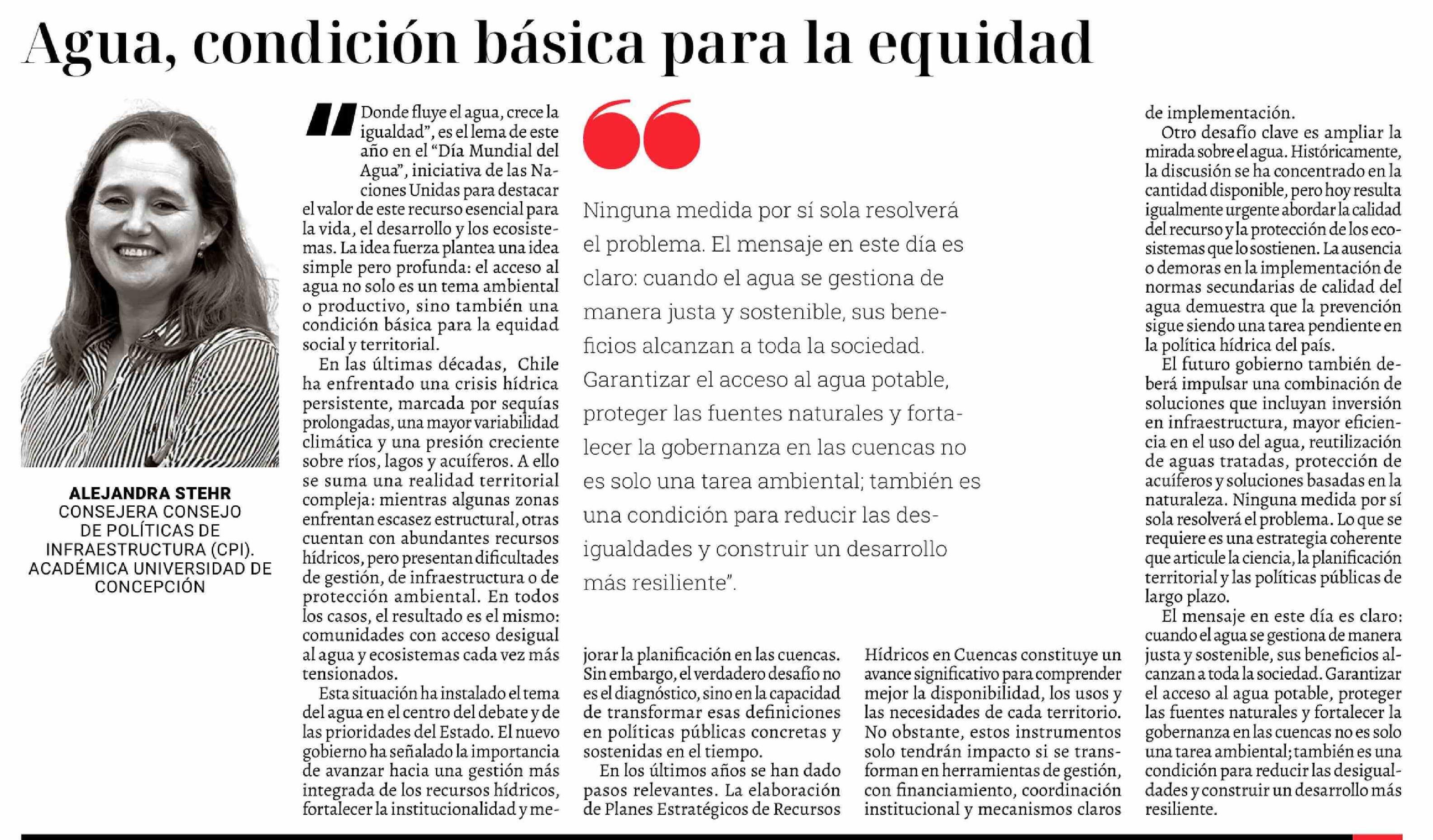 Título: Columnas de Opinión: Agua, condición básica para la equidad