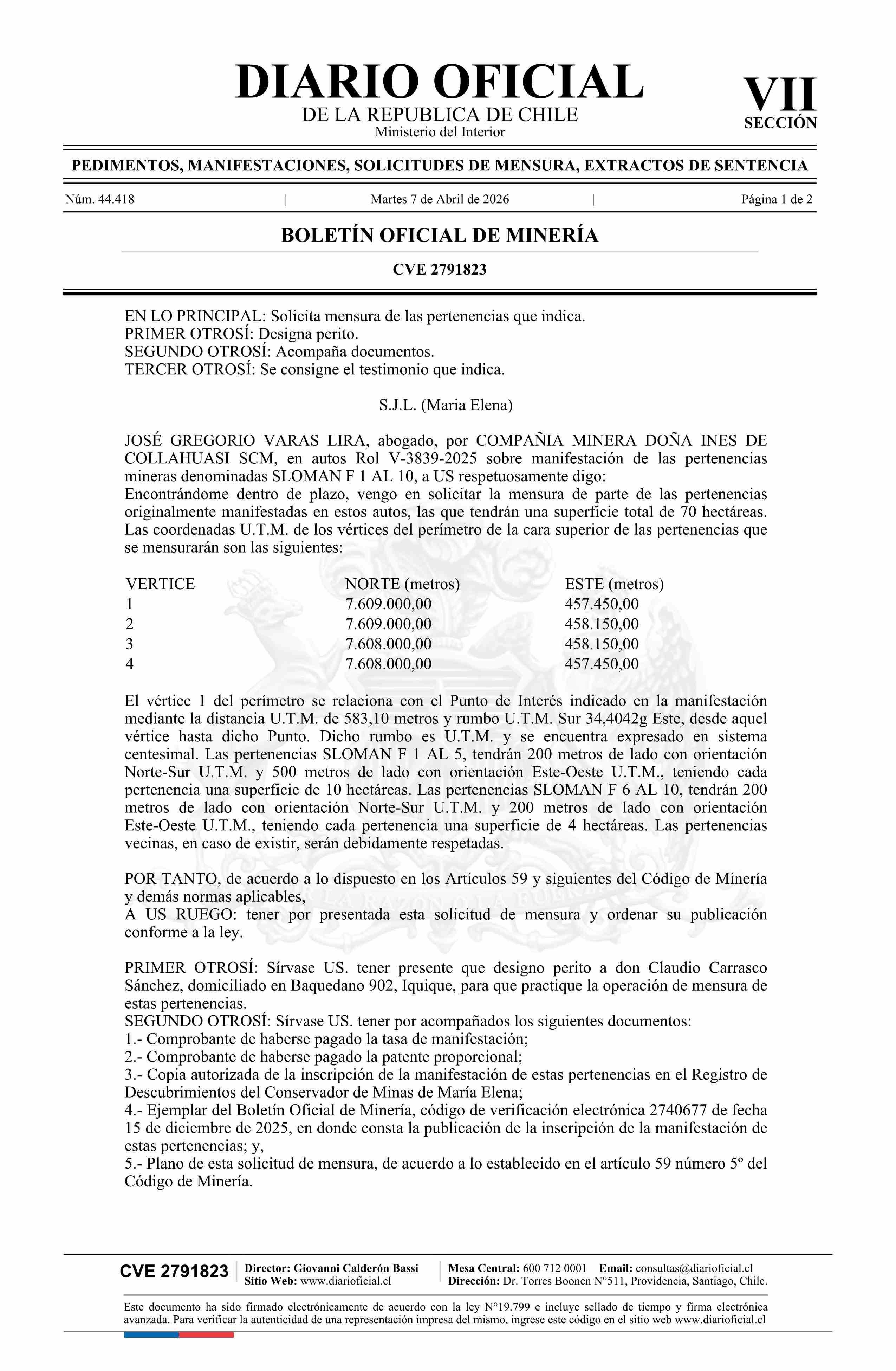 07-04-2026 DIARIO OFICIAL CHILE - BOLETÍN OFICIAL DE MINERÍA