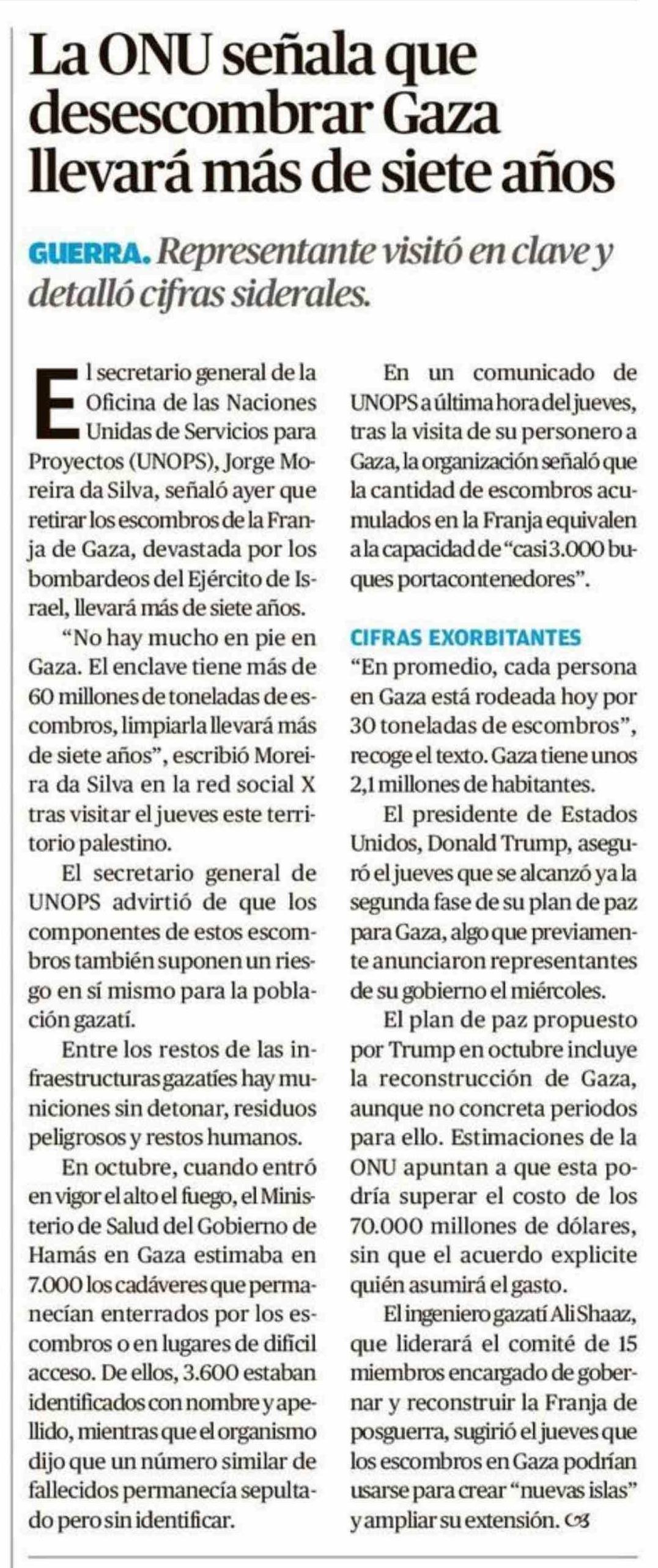 La ONU señala que desescombrar Gaza llevará más de siete años 17-01-2026 Crónica de Chillán |