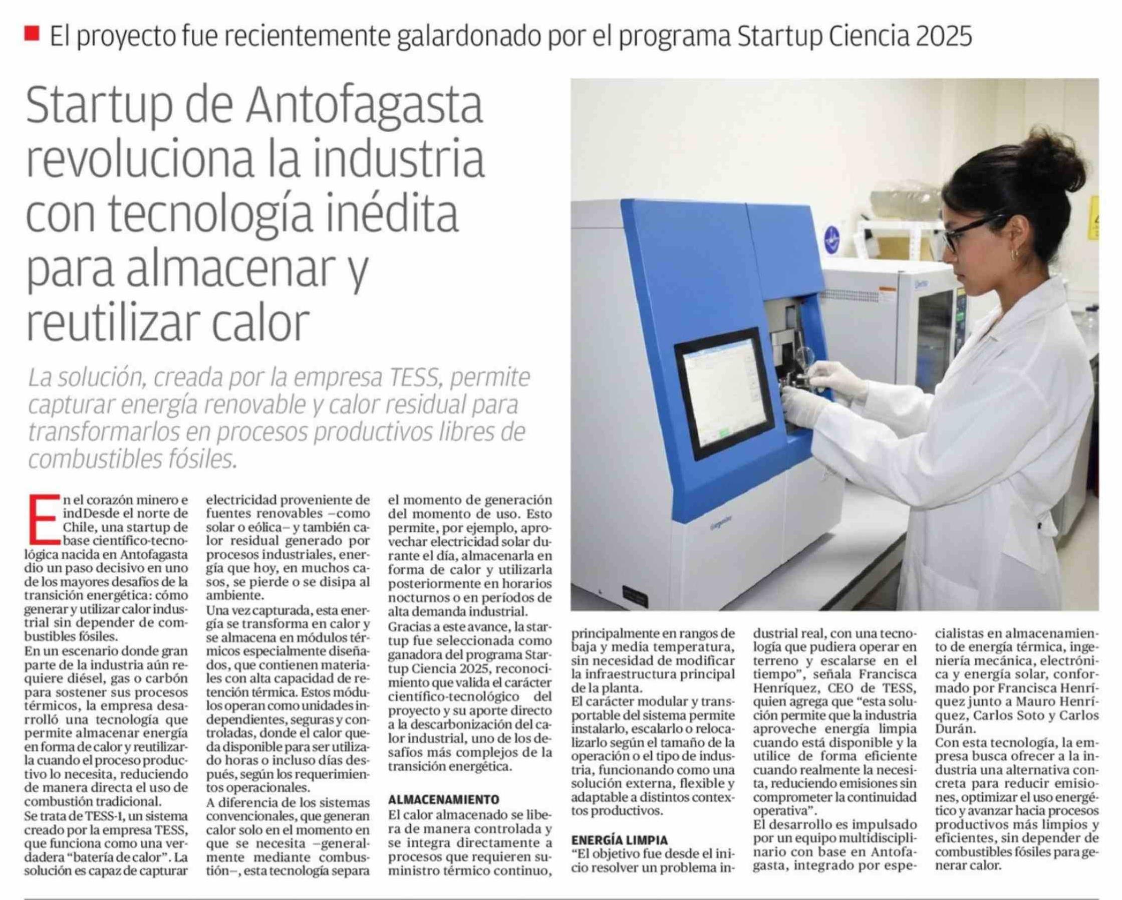 Título: Startup de Antofagasta revoluciona la industria con tecnología inédita para almacenar y reutilizar calor