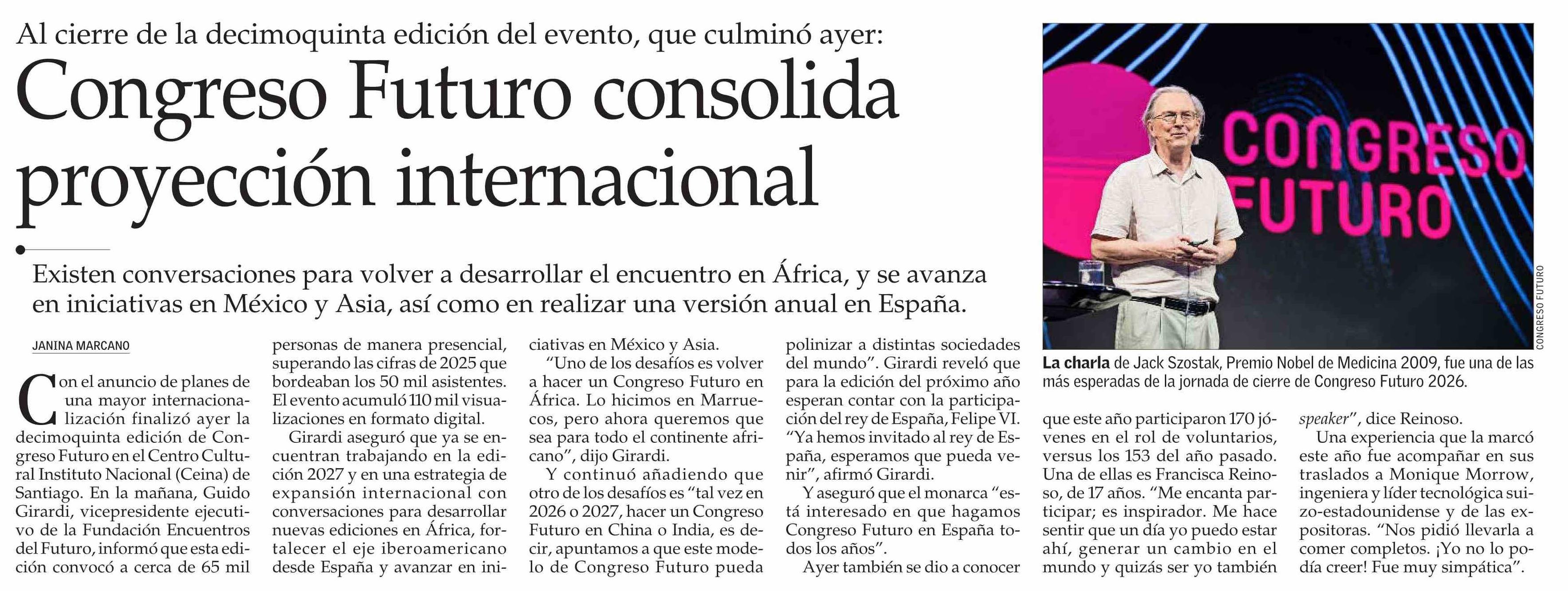 Congreso Futuro consolida proyección internacional 18-01-2026 El Mercurio |