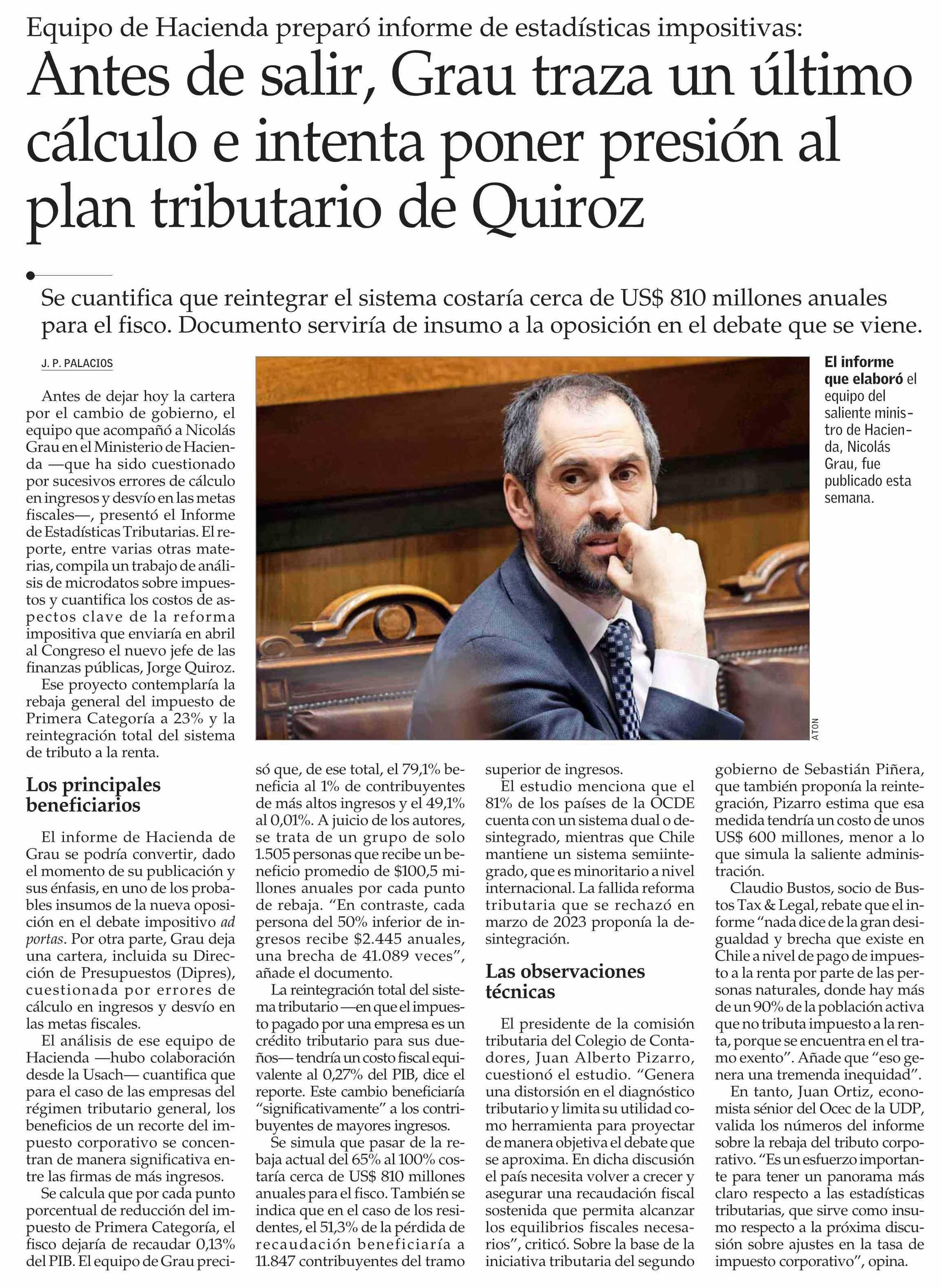 Título: Antes de salir, Grau traza un último cálculo e intenta poner presión al plan tributario de Quiroz