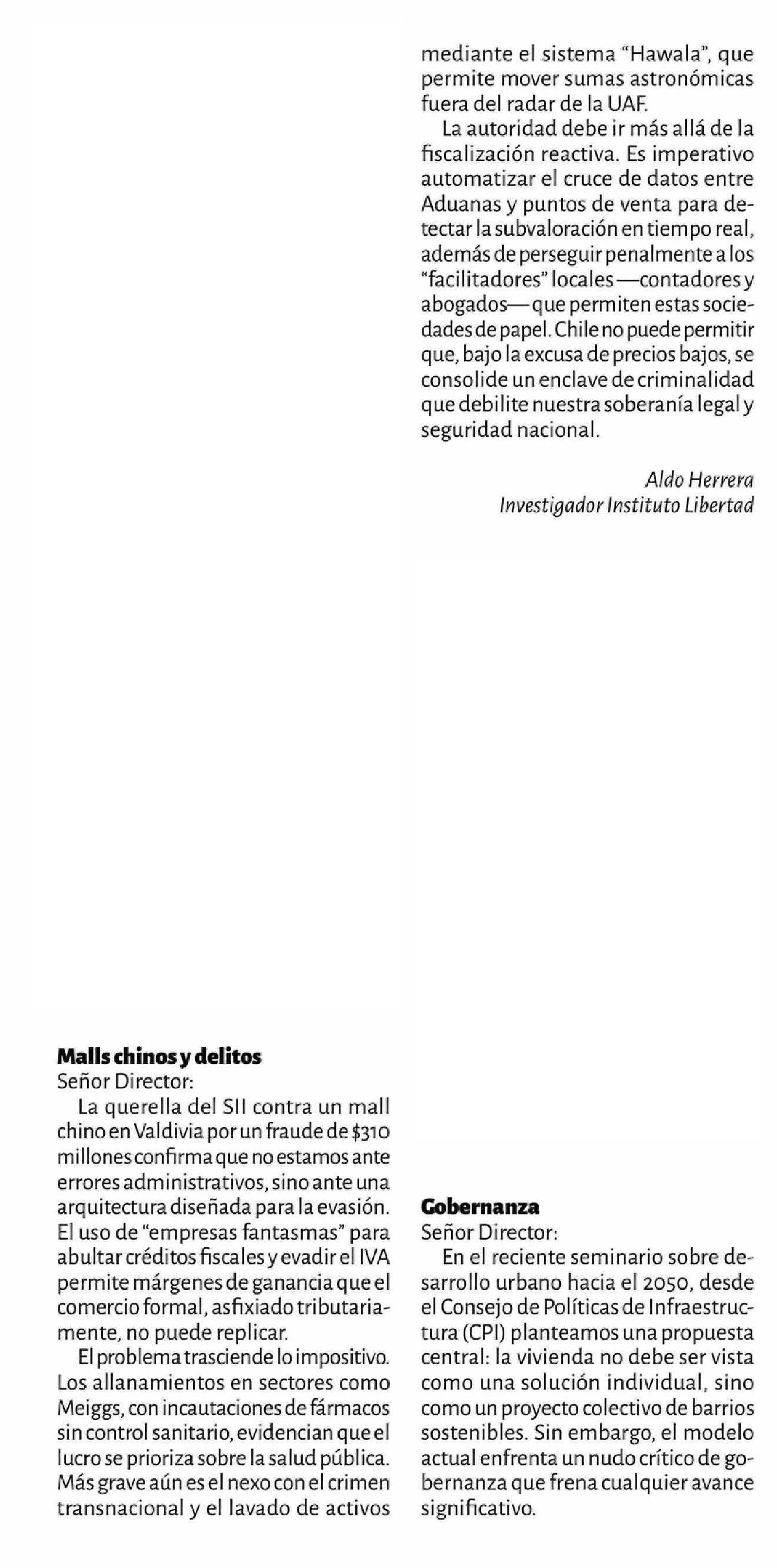 CARTAS: Malls chinos y delitos 16-02-2026 La Discusión |