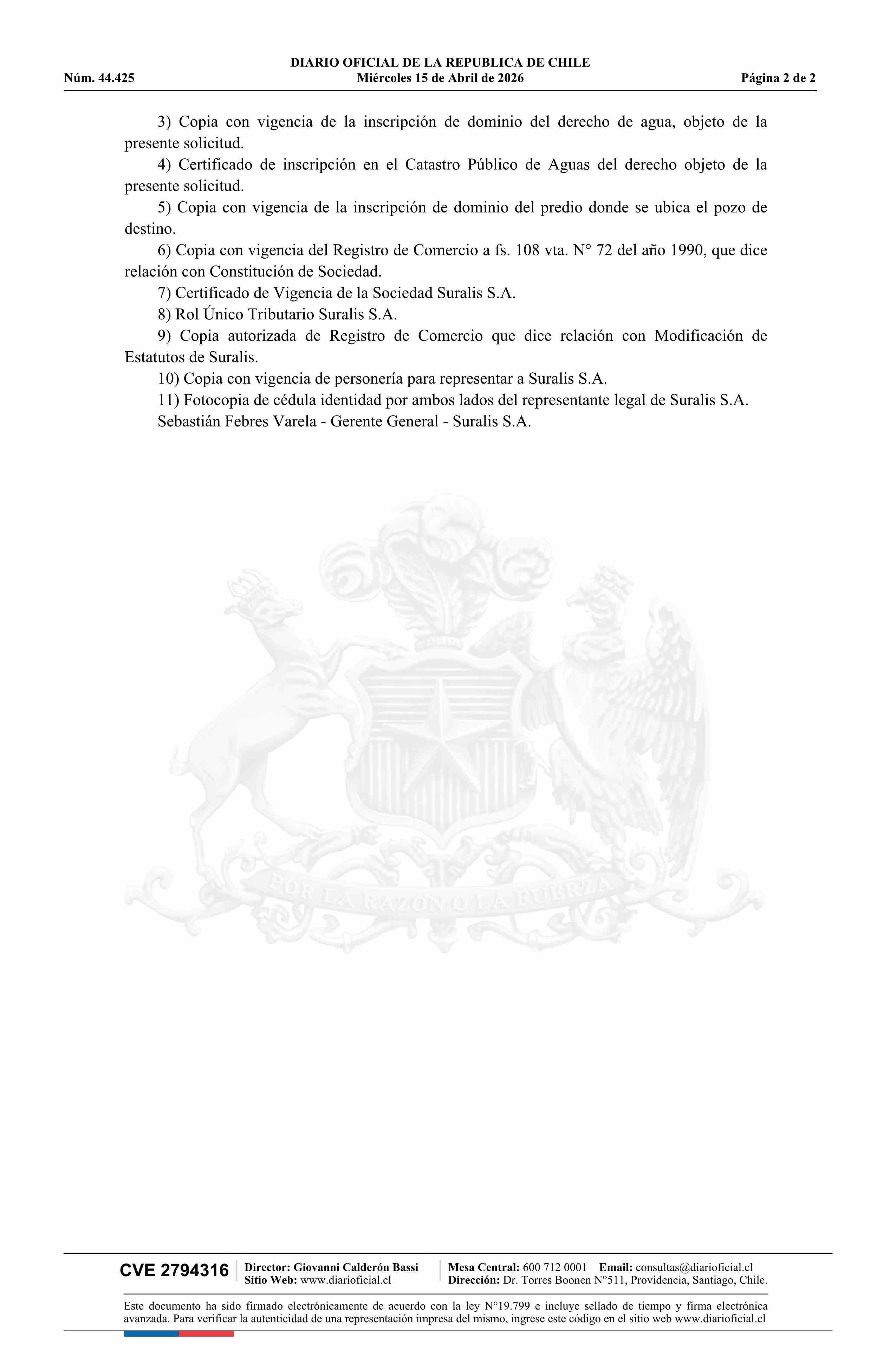 Solicitud Suralis S.A.