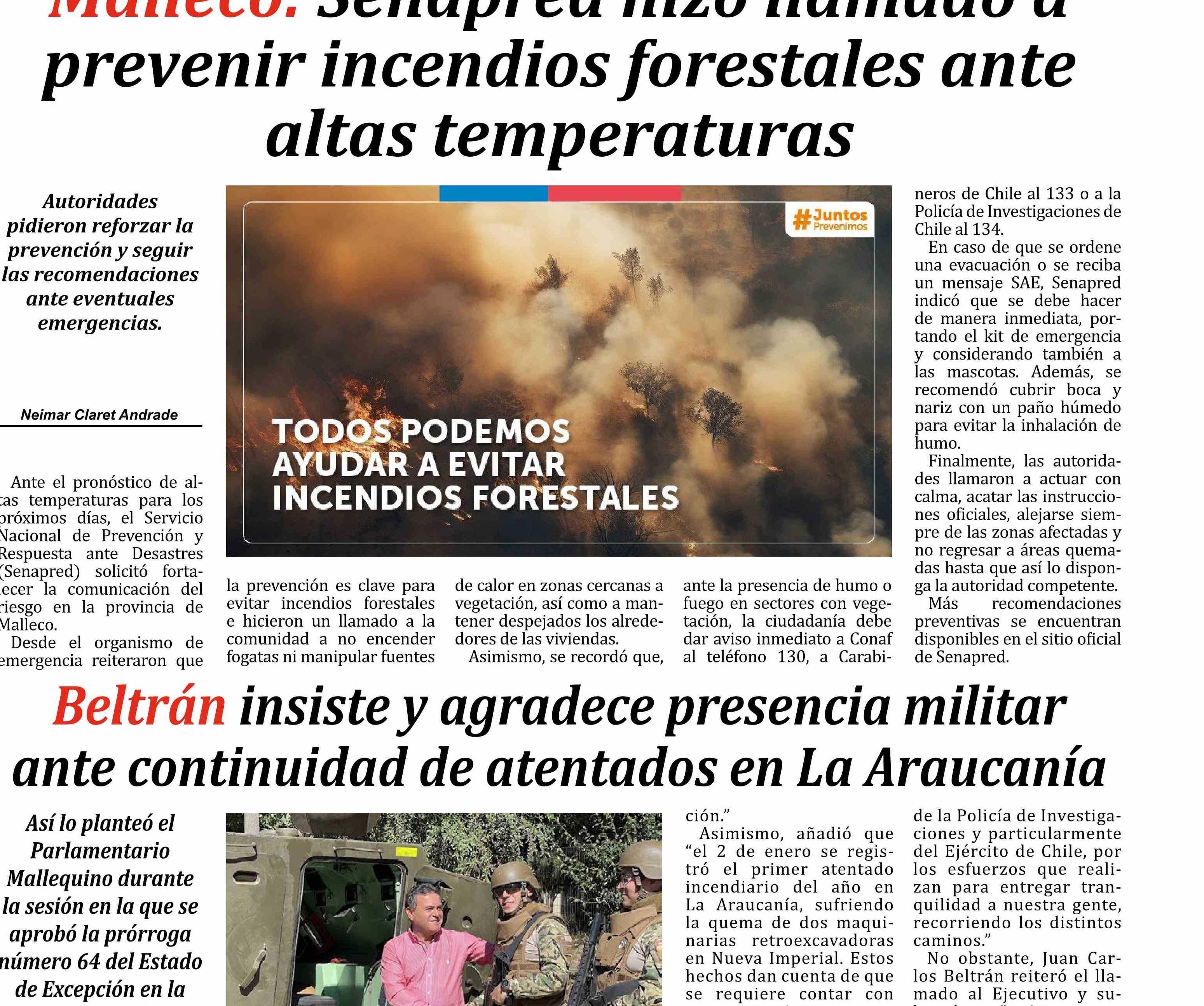 | Título: | Malleco: Senapred hizo llamado a prevenir incendios forestales ante altas temperaturas |