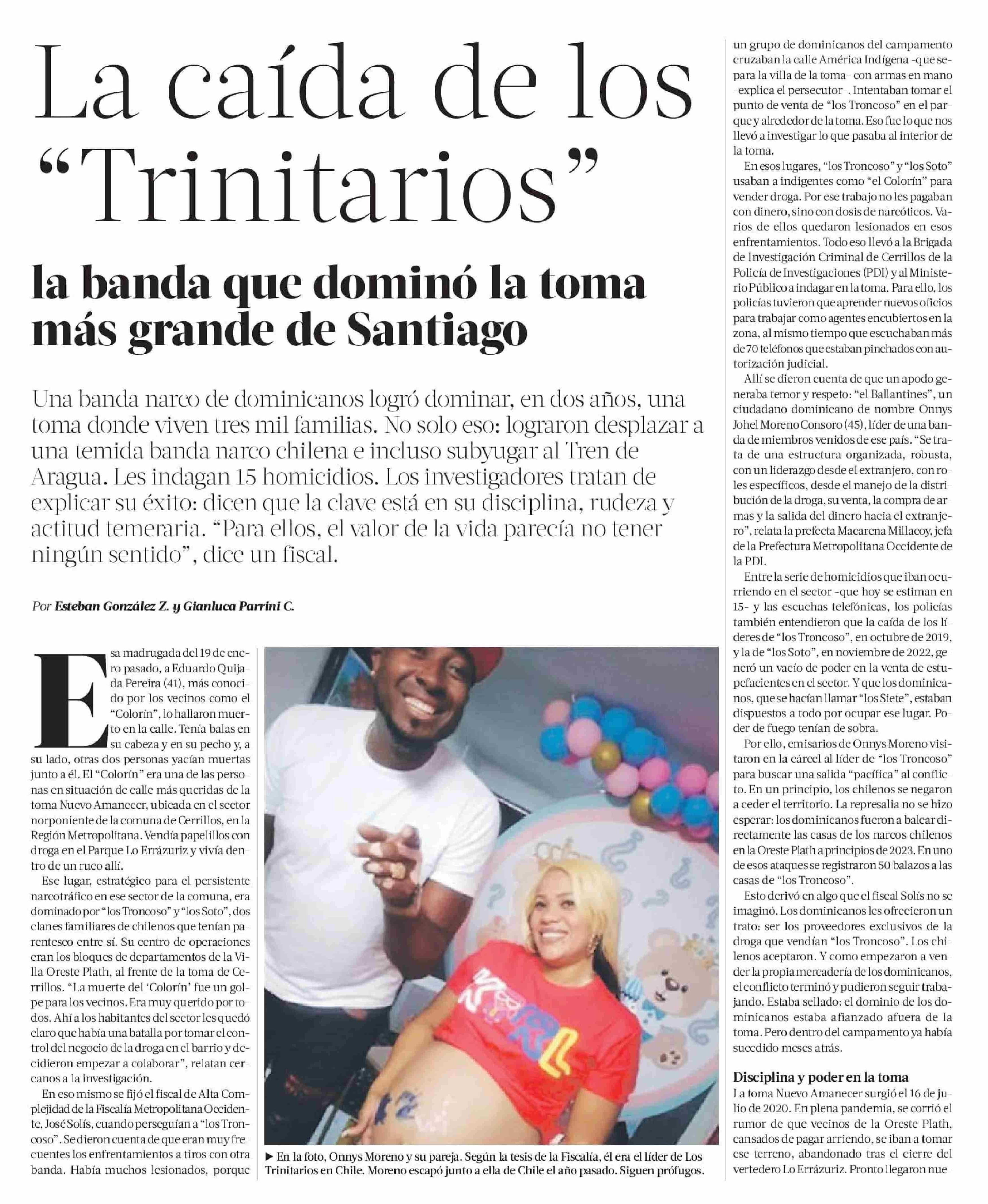La caída de los “Trinitarios” la banda que dominó la toma más grande de Santiago 21-04-2024 La Tercera |