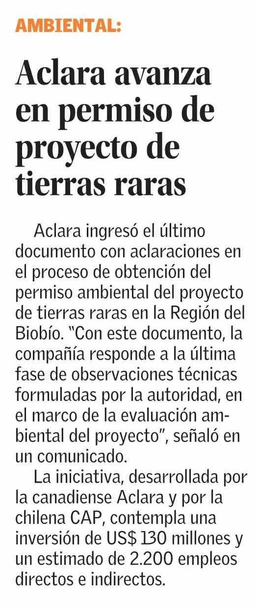 Título: Aclara avanza en permiso de proyecto de tierras raras