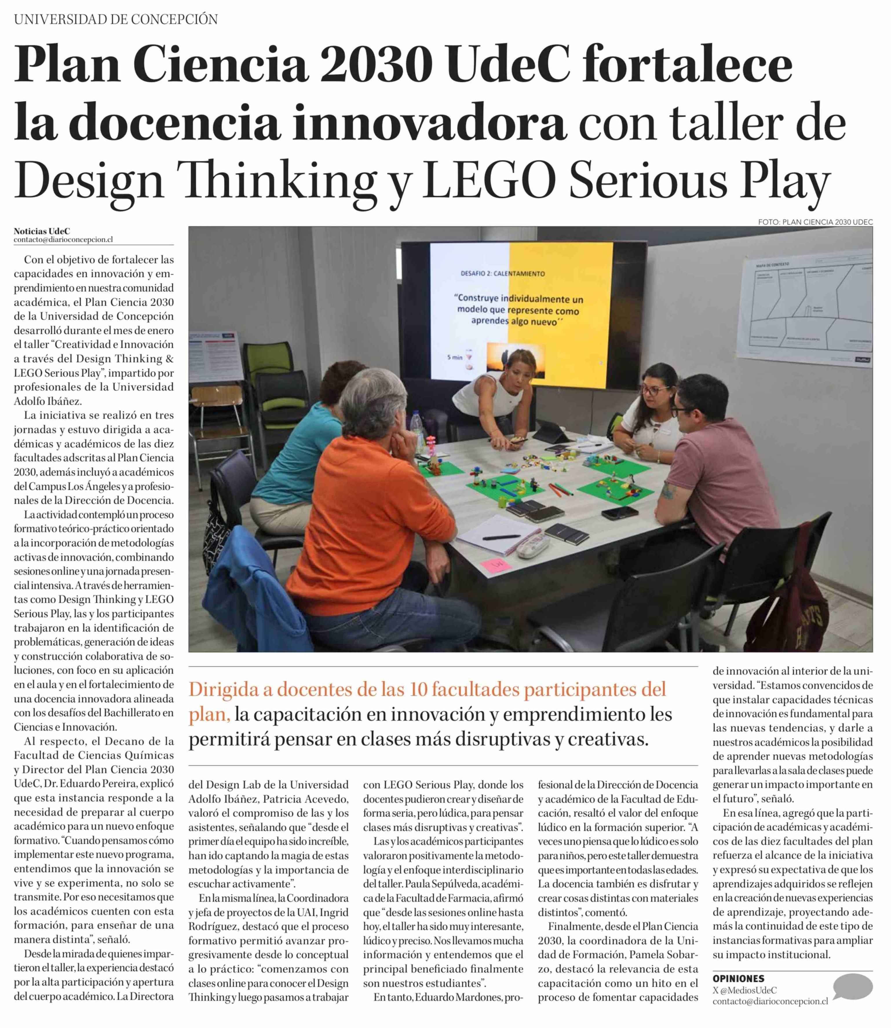 Plan Ciencia 2030 UdeC fortalece la docencia innovadora con taller de Design Thinking y LEGO Serious Play 01-03-2026 Diario Concepción |