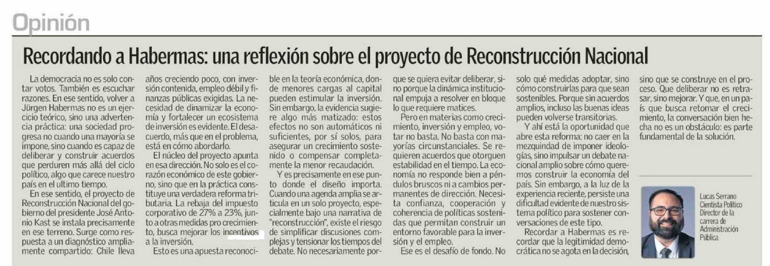 Título: Columnas de Opinión: Recordando a Habermas: una reflexión sobre el proyecto de Reconstrucción Nacional