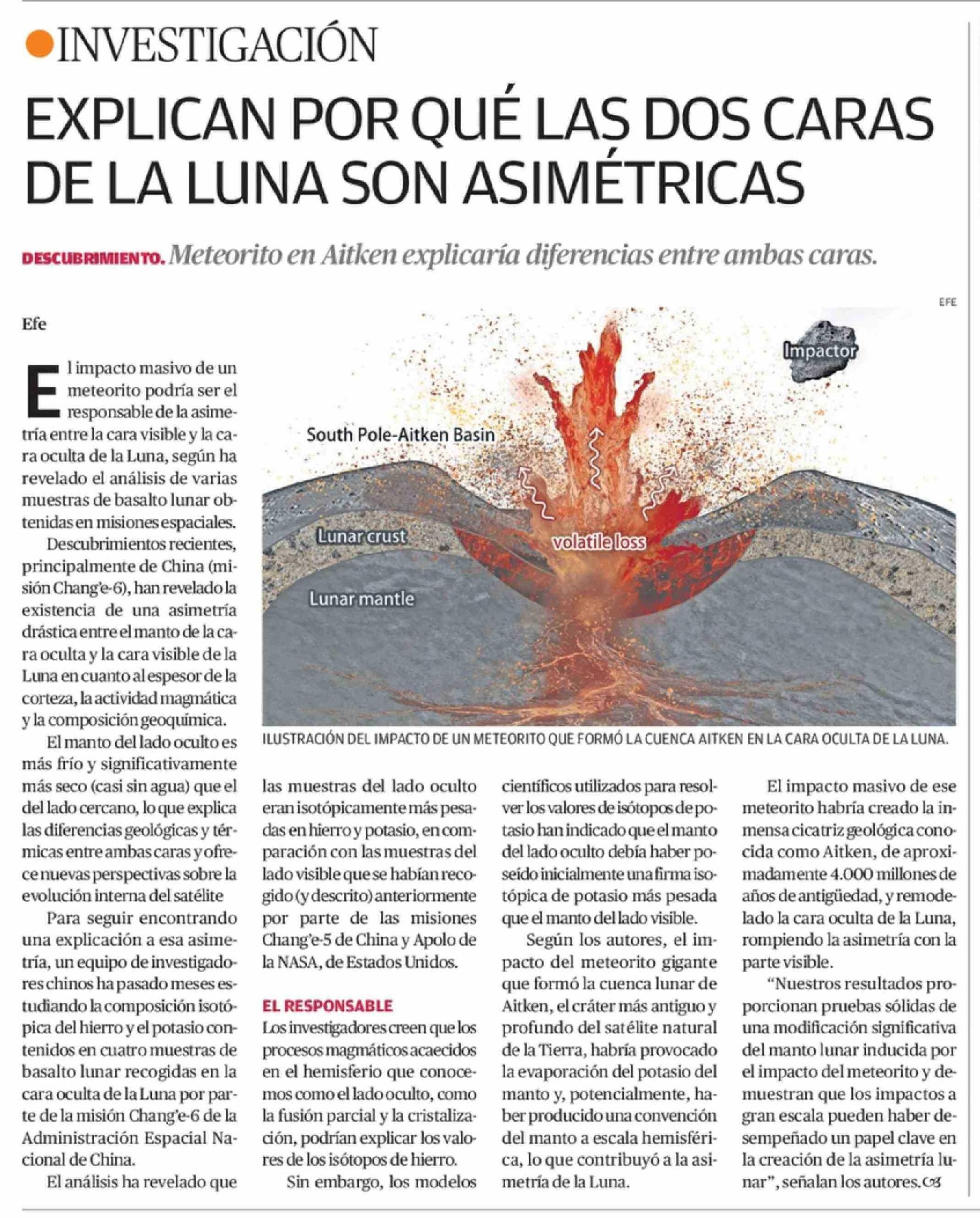 EXPLICAN POR QUÉ LAS DOS CARAS DE LA LUNA SON ASIMÉTRICAS 26-02-2026 El Mercurio de Antofagasta |