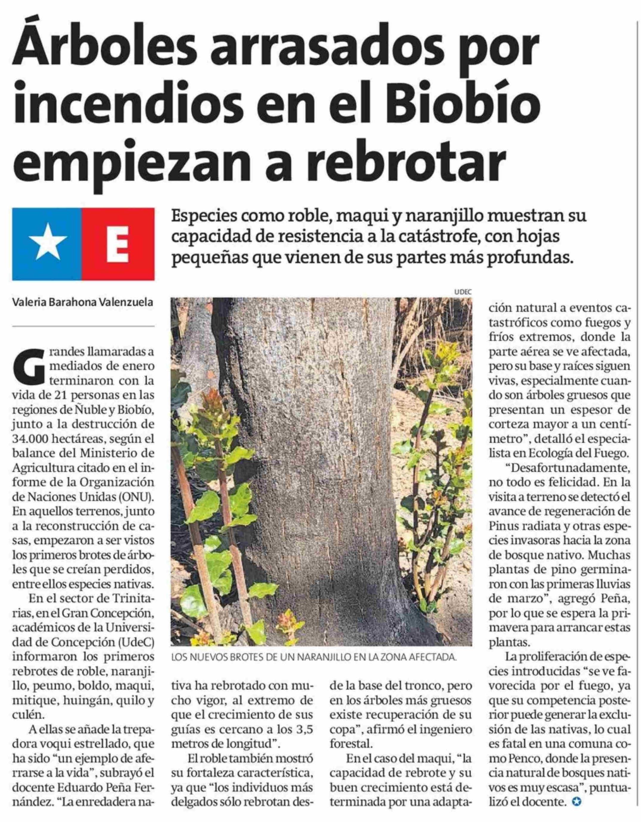 Arboles arrasados por incendios en el Biobío empiezan a rebrotar 21-04-2026 La Estrella de Antofagasta |