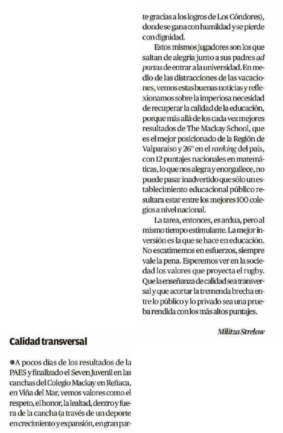 Cartas: Calidad transversal 10-01-2026 El Mercurio de Valparaíso |