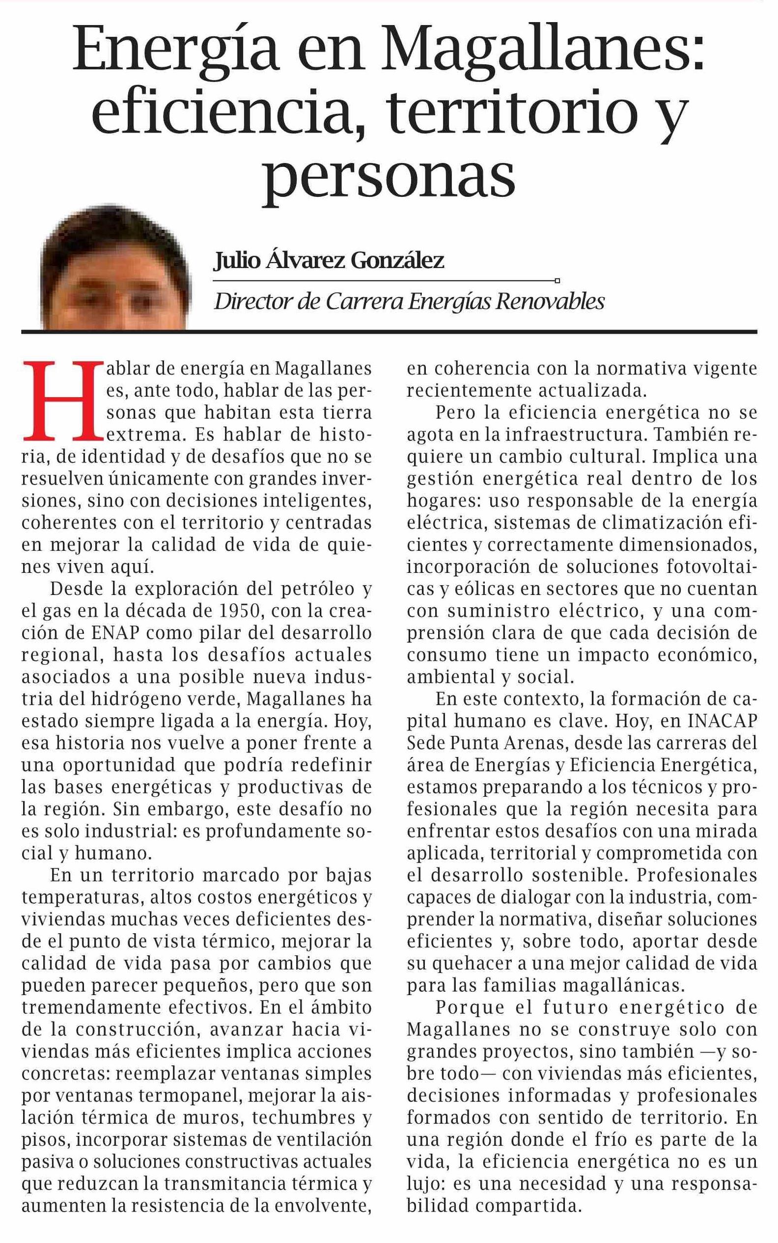 Título: Columnas de Opinión: Energía en Magallanes: eficiencia, territorio y personas