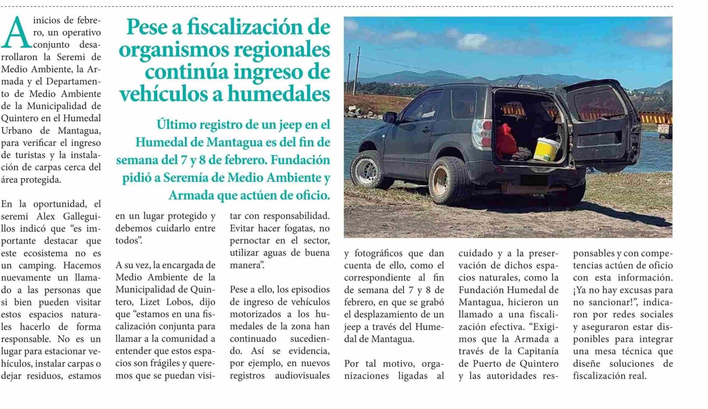 Pese a fiscalización de regionales continua ingreso de vehículos a humedales 23-02-2026 Periódico de la Costa |