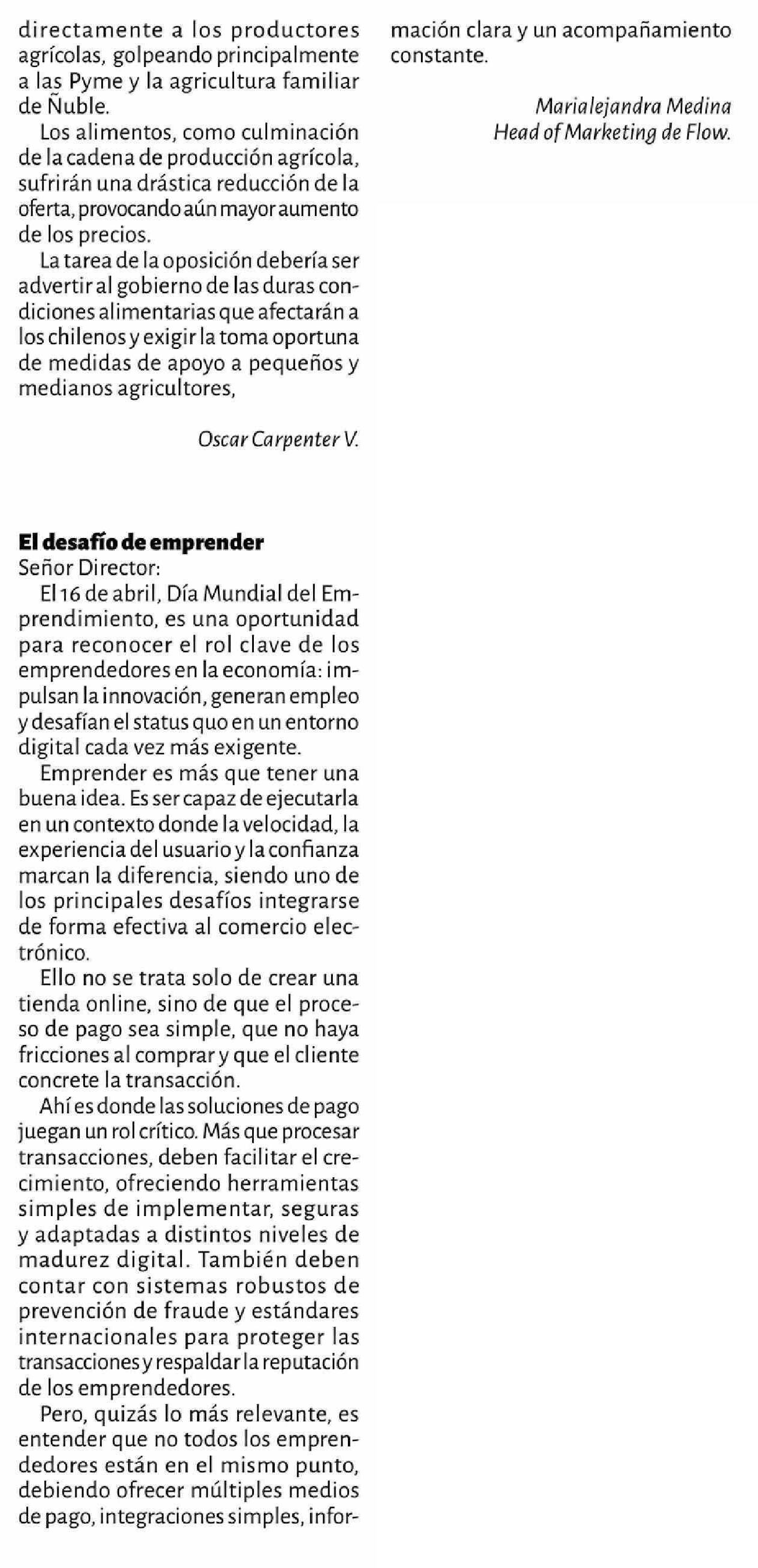 CARTAS: El desafío de emprender 18-04-2026 La Discusión |