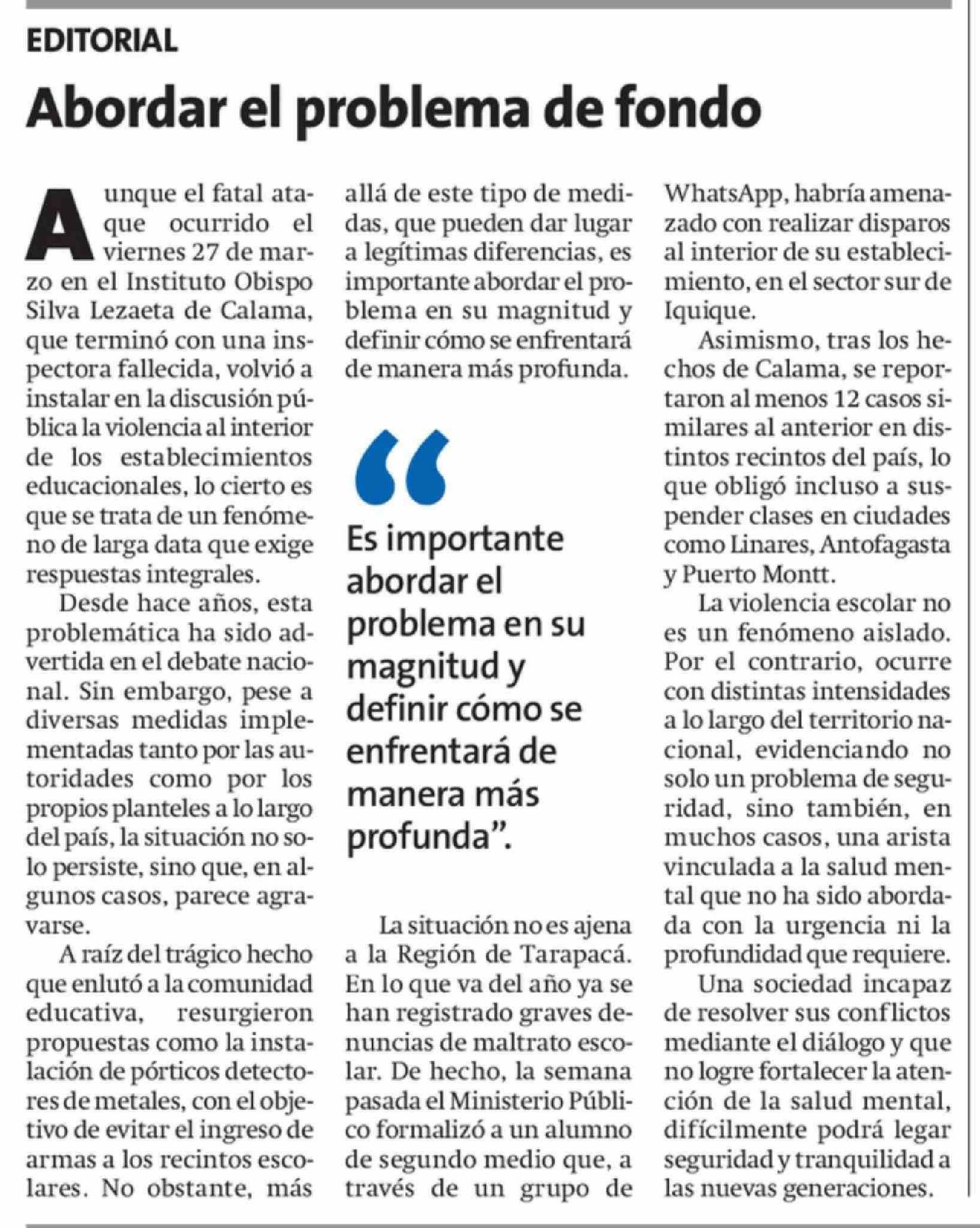 Editorial: Abordar el problema de fondo 07-04-2026 La Estrella de Iquique |