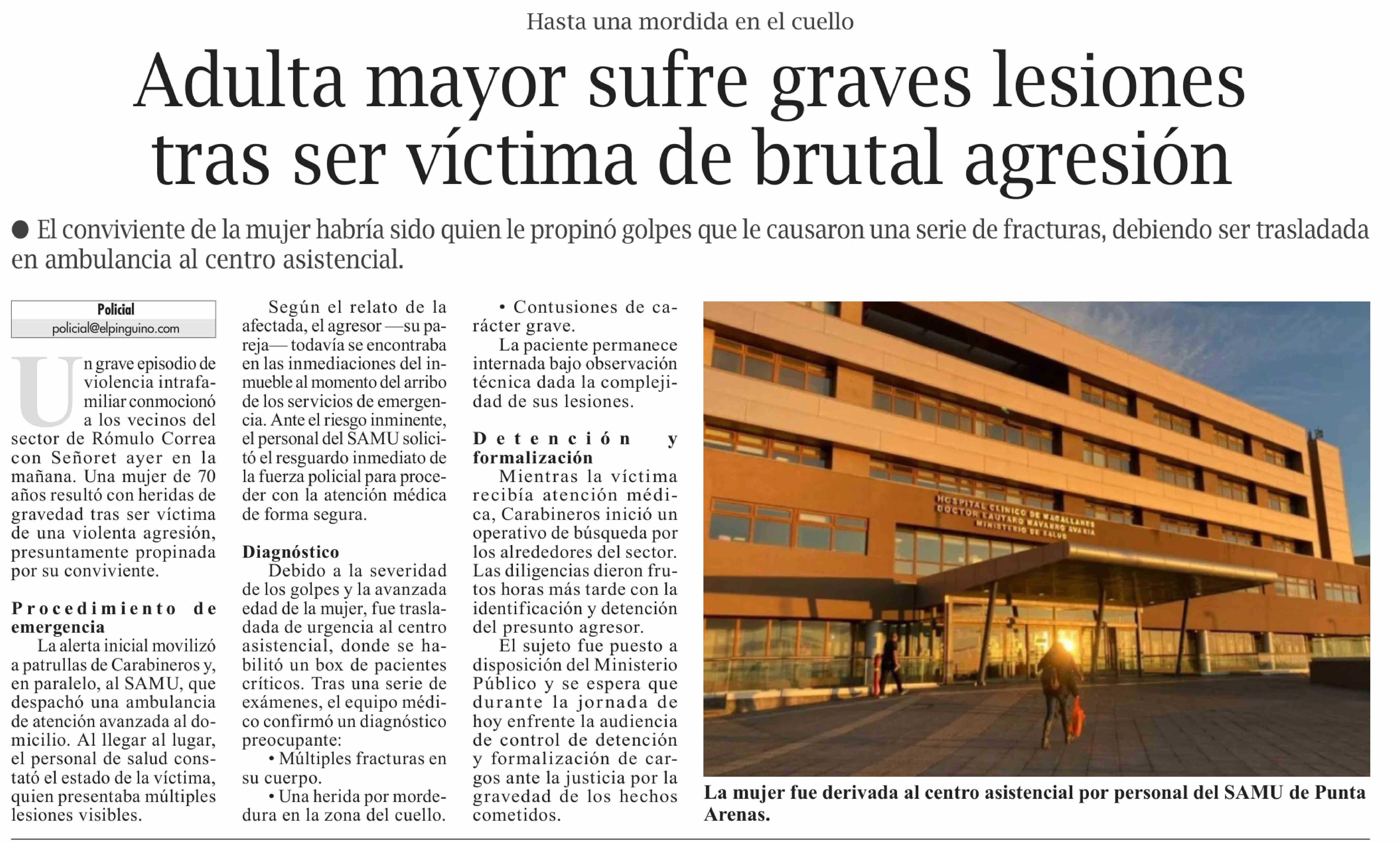 Adulta mayor sufre graves lesiones tras ser víctima de brutal agresión 01-02-2026 El Pingüino |
