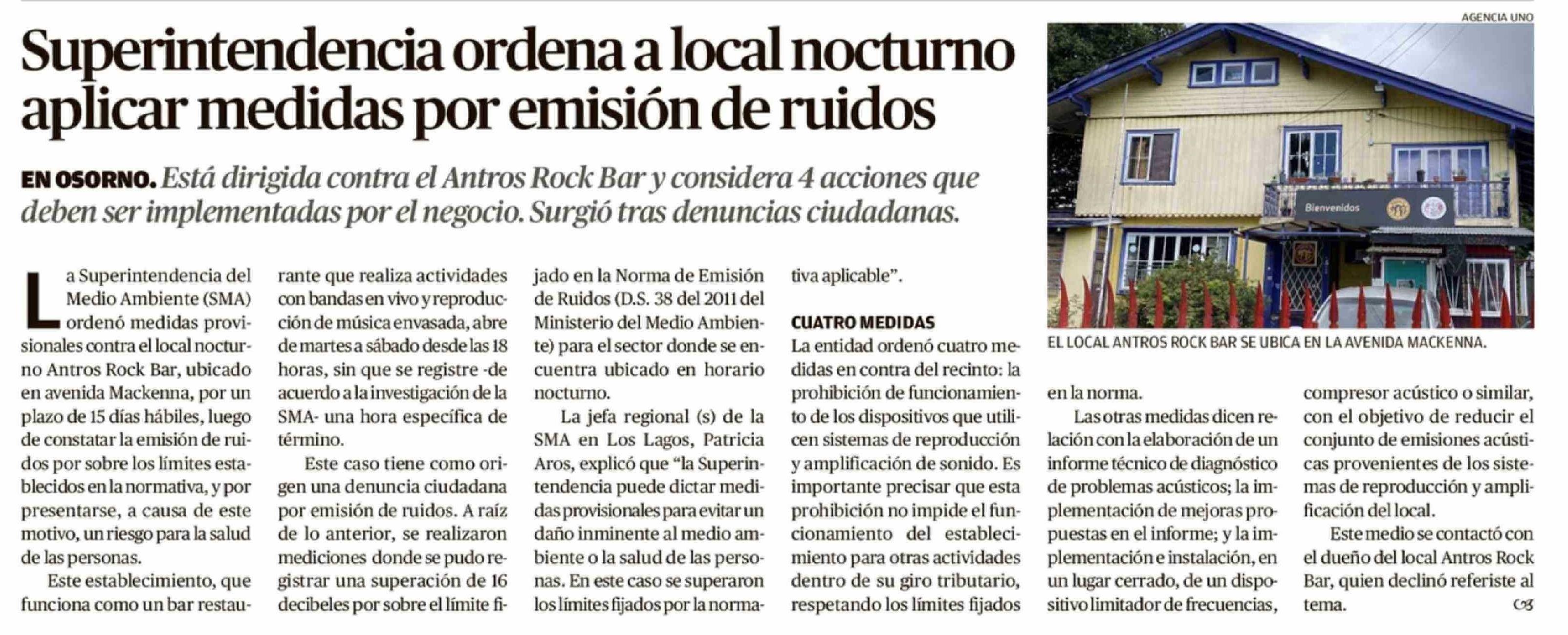 Título: Superintendencia ordena a local nocturno aplicar medidas por emisión de ruidos