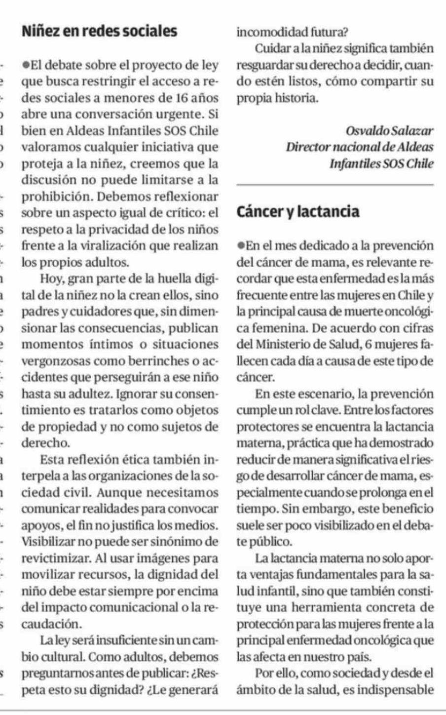 Cartas: Niñez en redes sociales 12-02-2026 El Diario de Atacama |