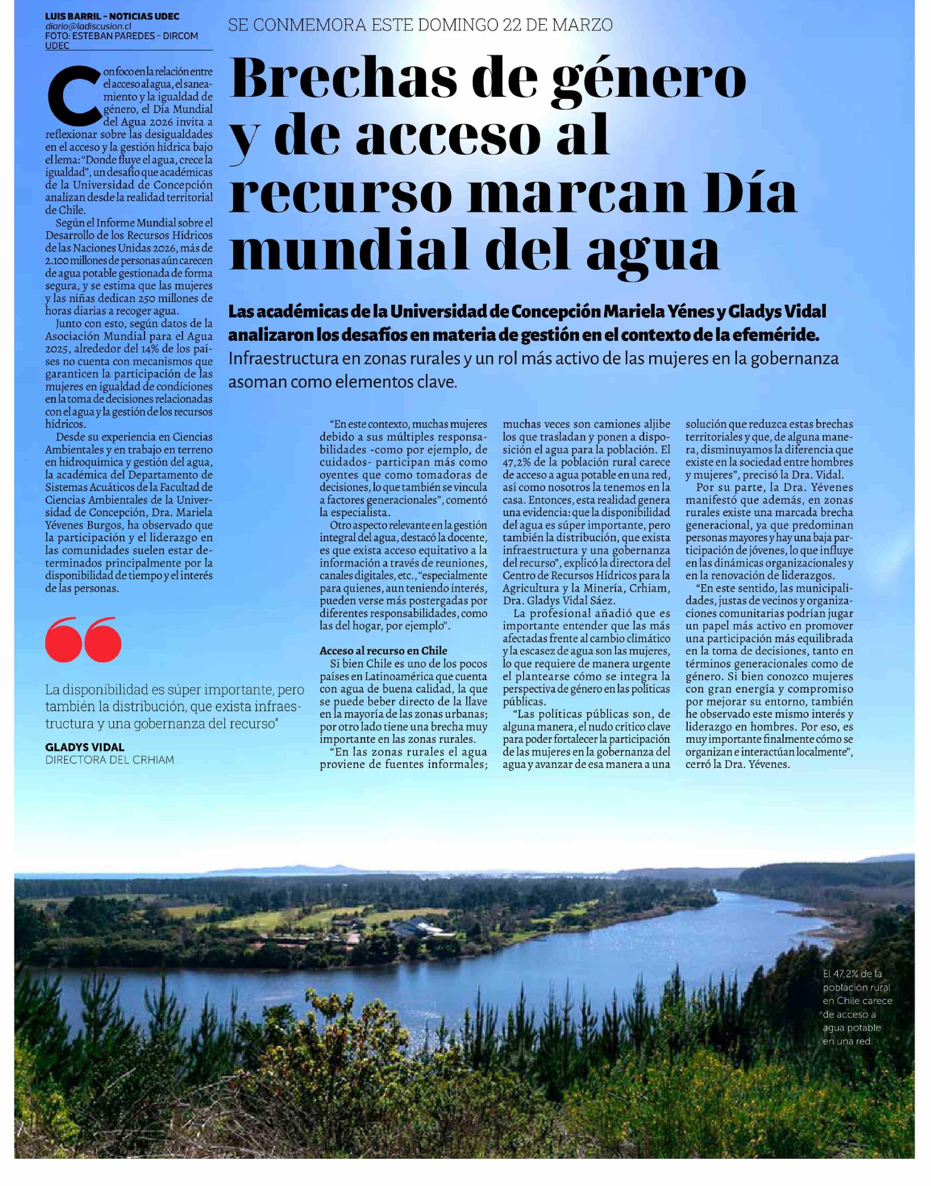 Brechas de género y de acceso al recurso marcan Día mundial del agua 22-03-2026 La Discusión |