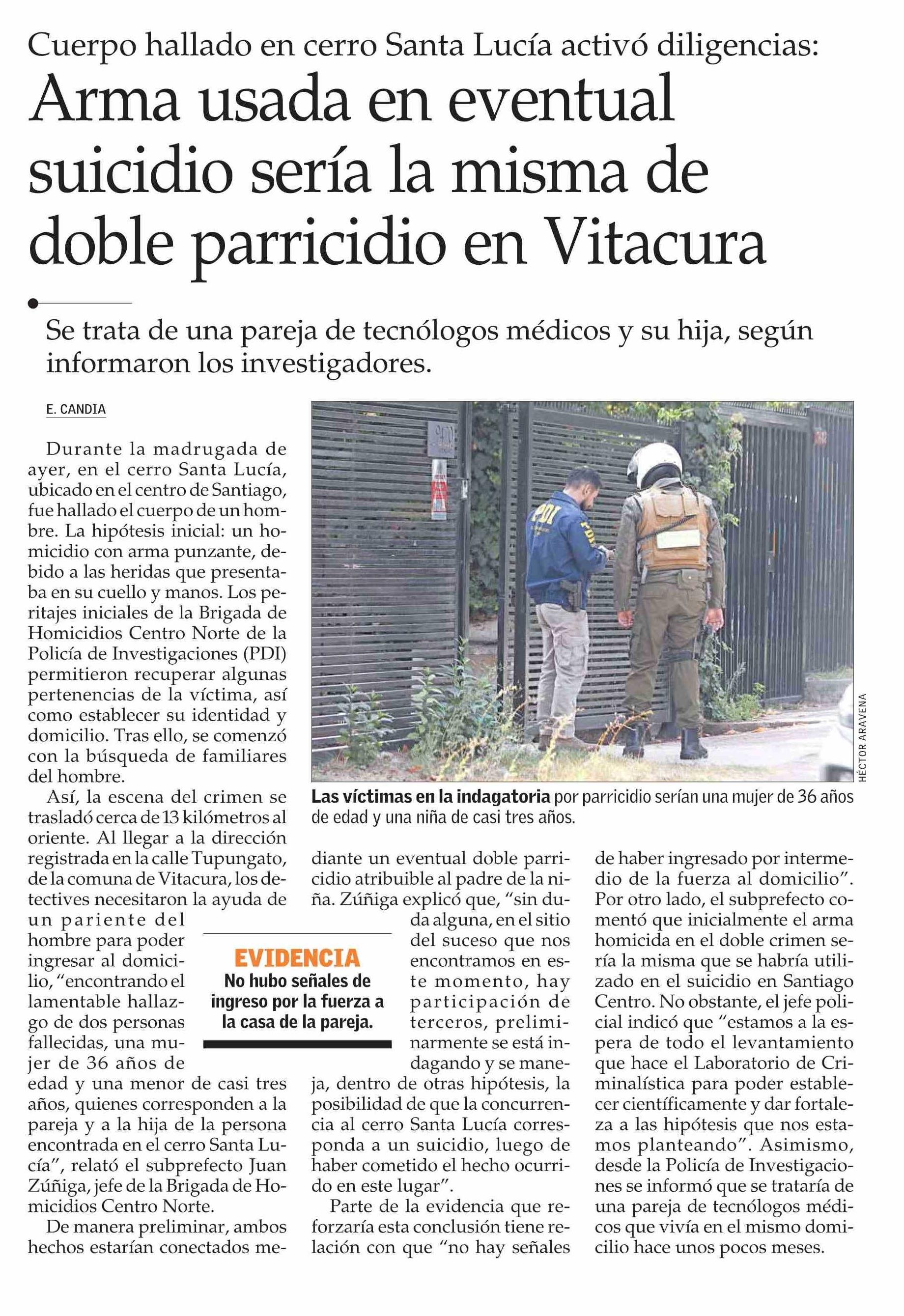 Arma usada en eventual suicidio sería la misma de doble parricidio en Vitacura 29-03-2025 El Mercurio |