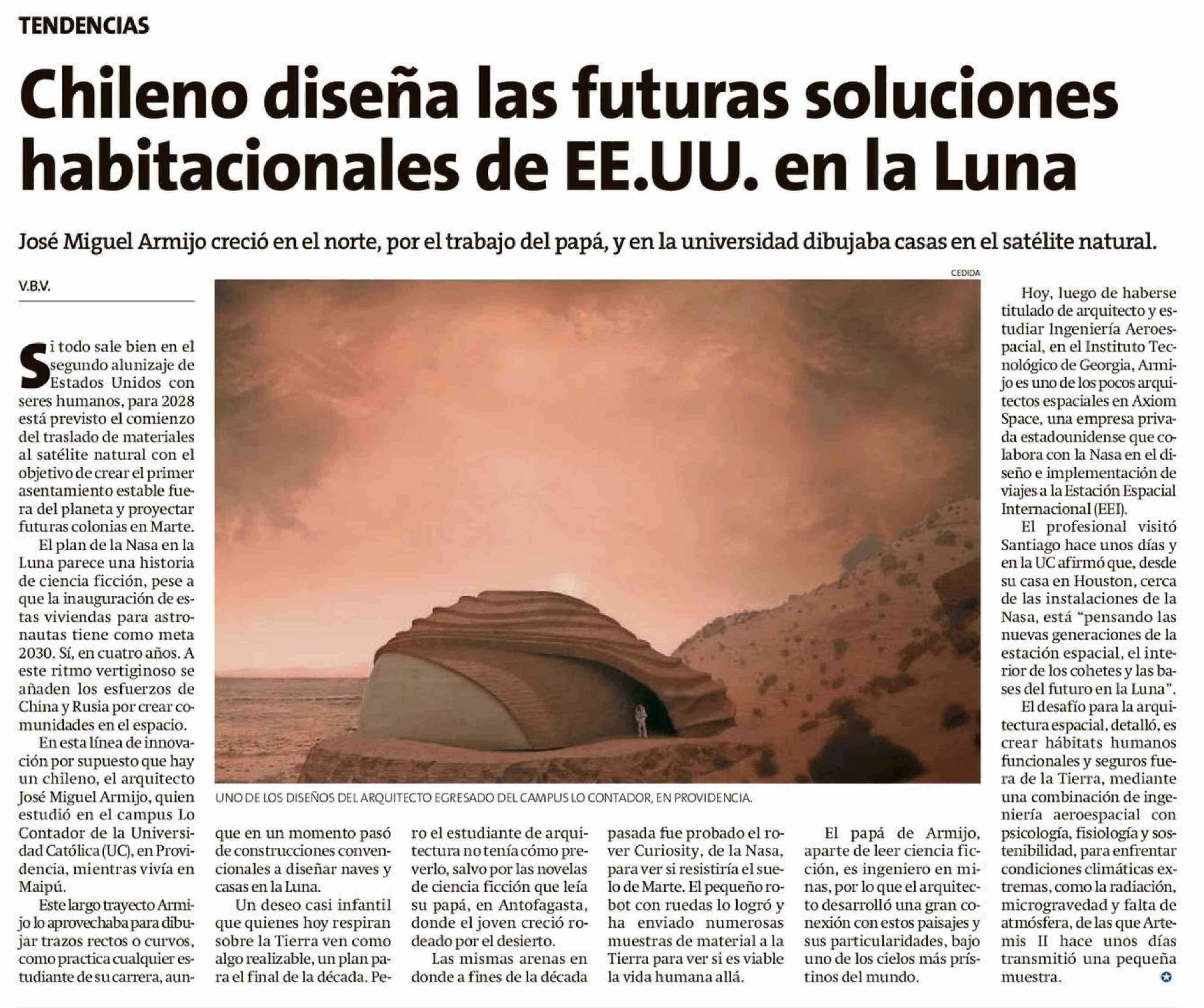 Título: Chileno diseña las futuras soluciones habitacionales de EE.UU. en la Luna