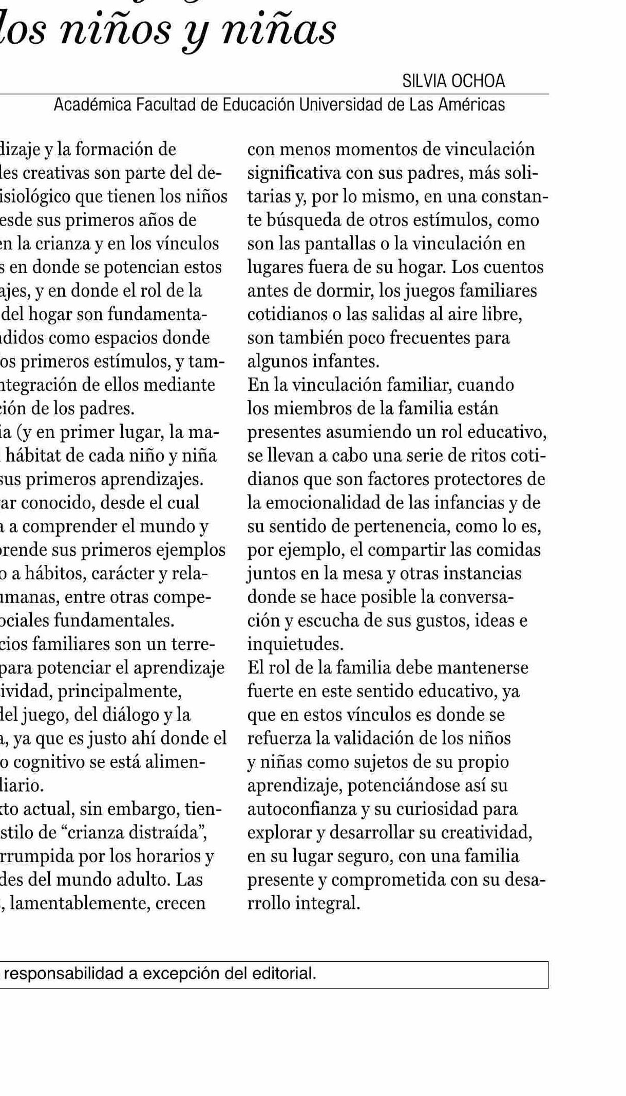 | Título: | Columnas de Opinión: El rol de la familia en el aprendizaje y la creatividad de los niños y niñas |