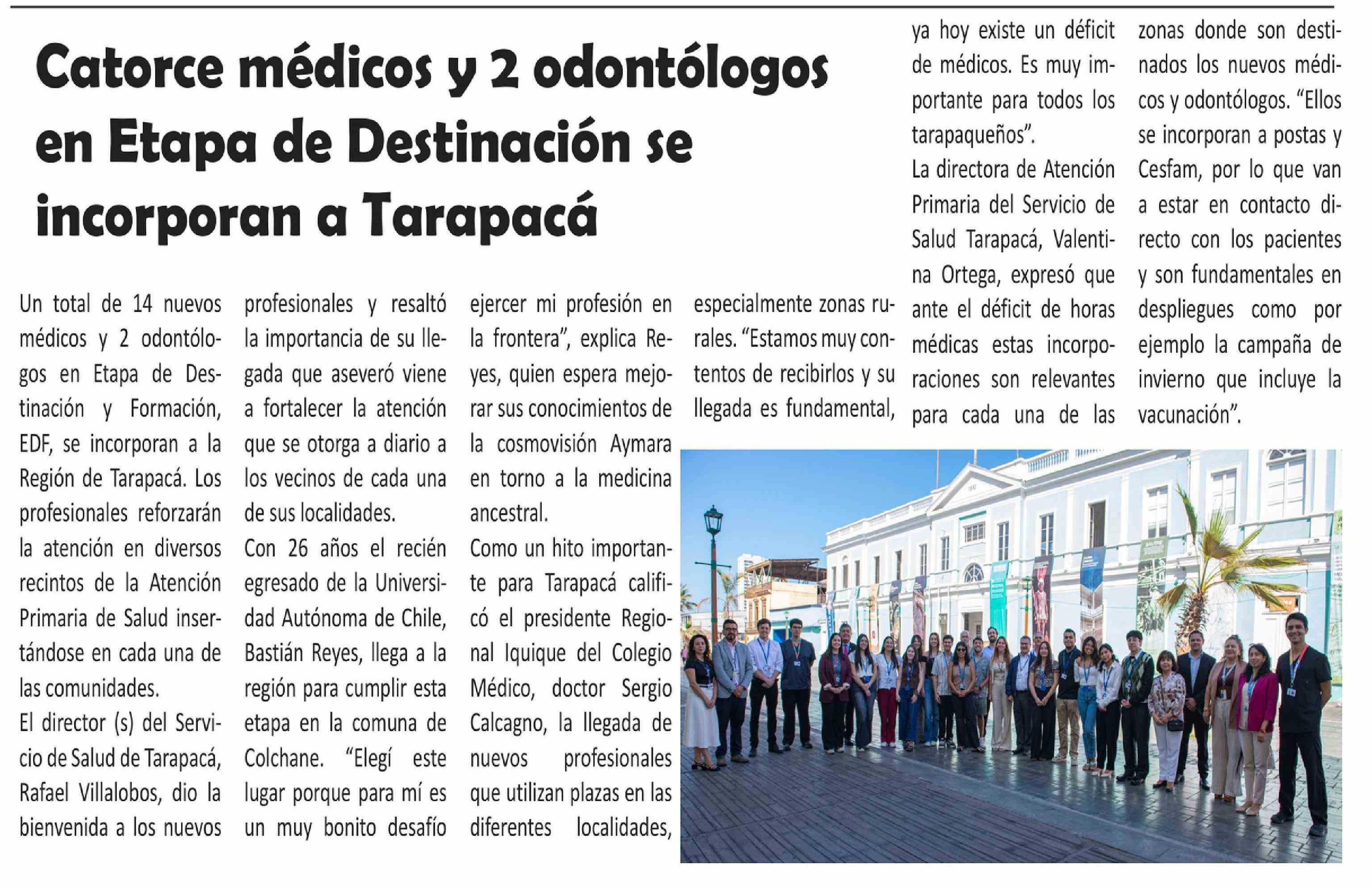 Título: Catorce médicos y 2 odontólogos en Etapa de Destinación se incorporan a Tarapacá