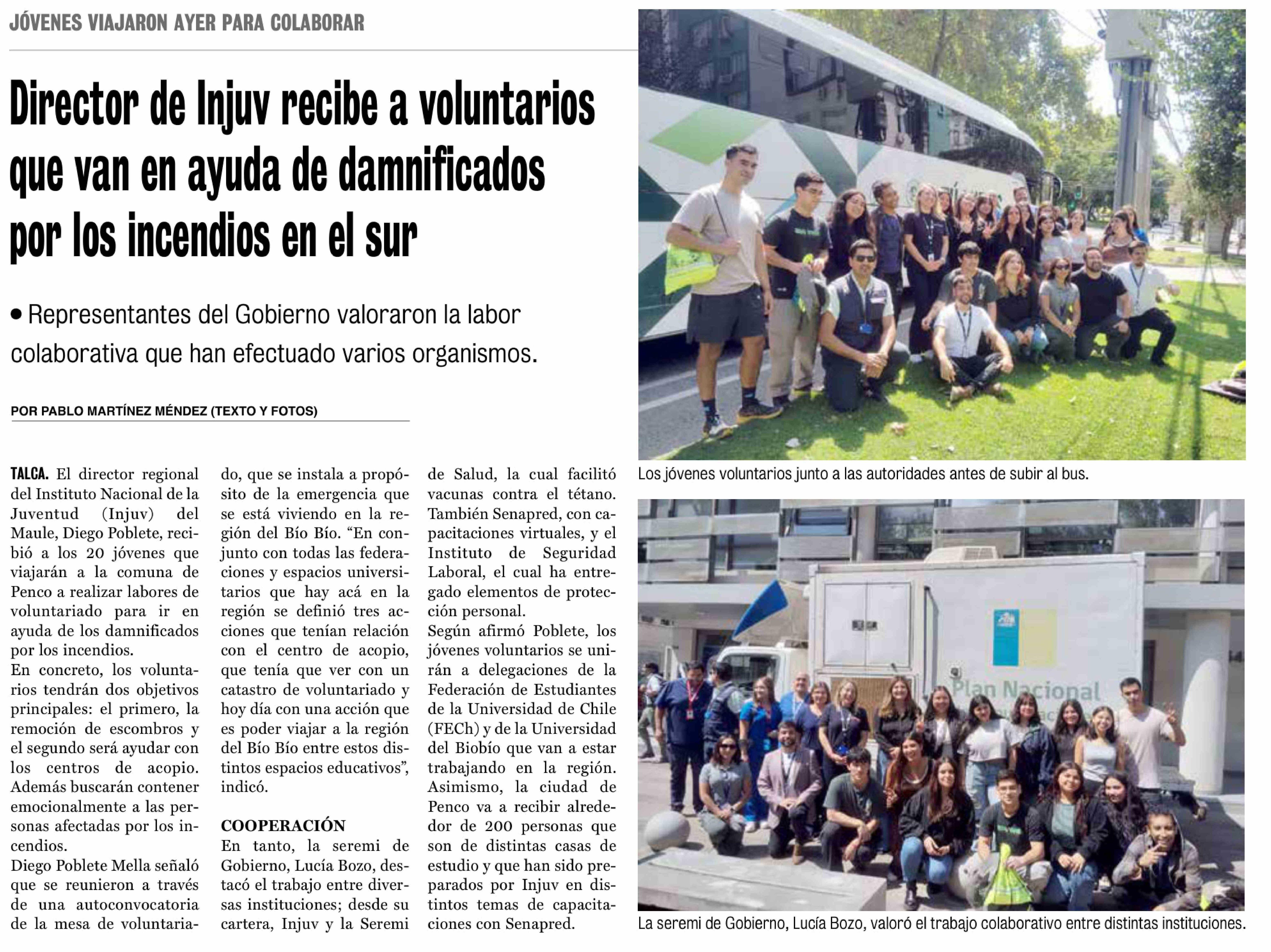 Director de Injuv recibe a voluntarios que van en ayuda de damnificados por los incendios en el sur 03-02-2026 La Prensa de Curicó |