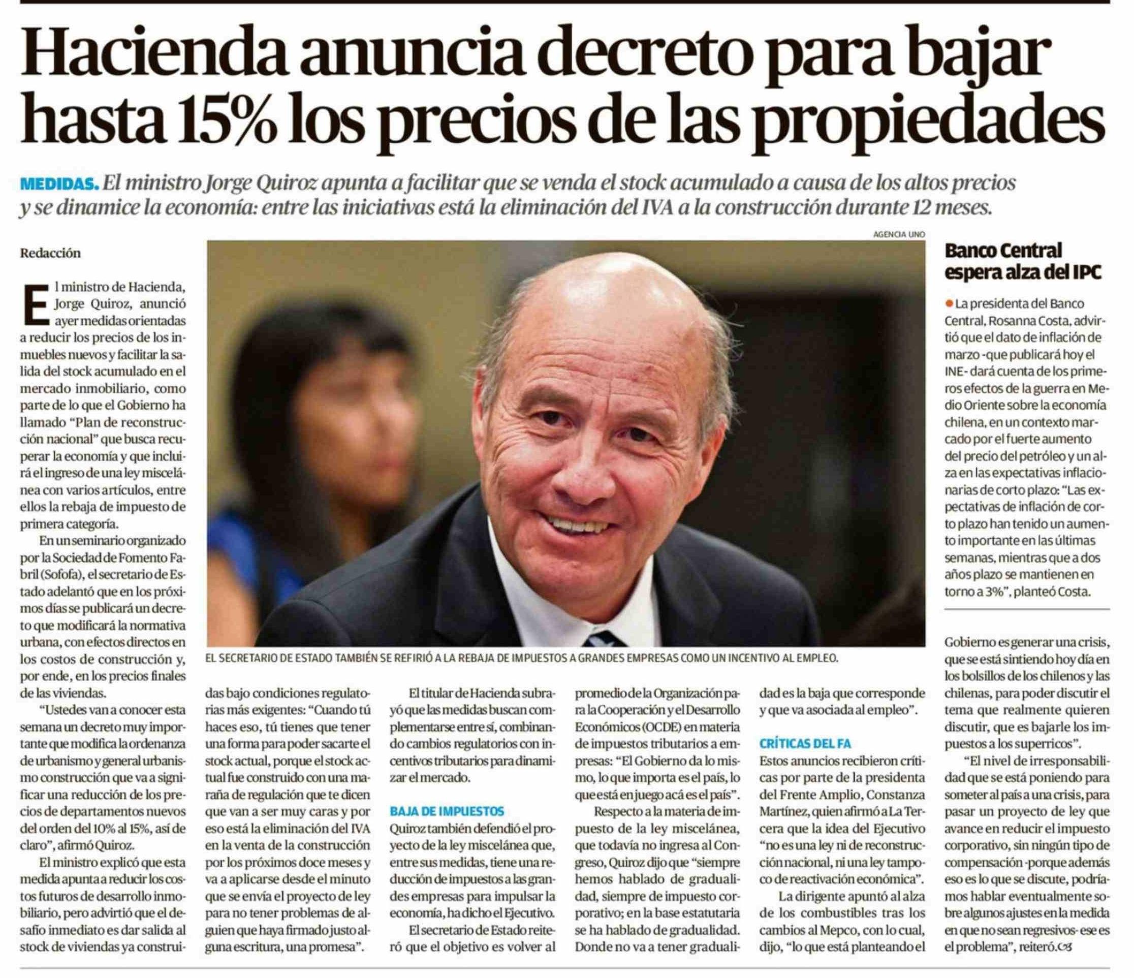 Título: Hacienda anuncia decreto para bajar hasta 15% los precios de las propiedades