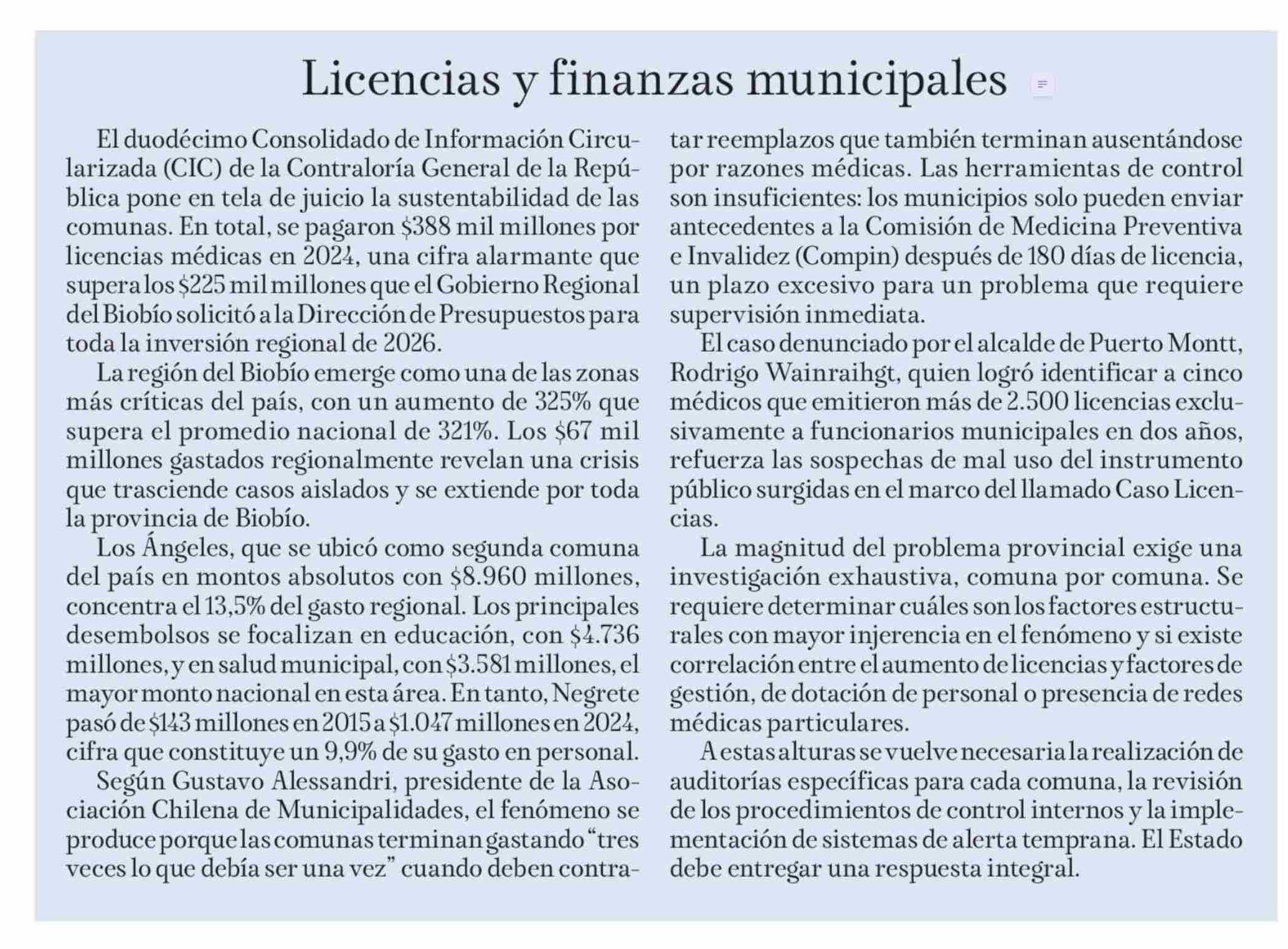 EDITORIAL: Licencias y finanzas municipales 26-06-2025 La Tribuna |