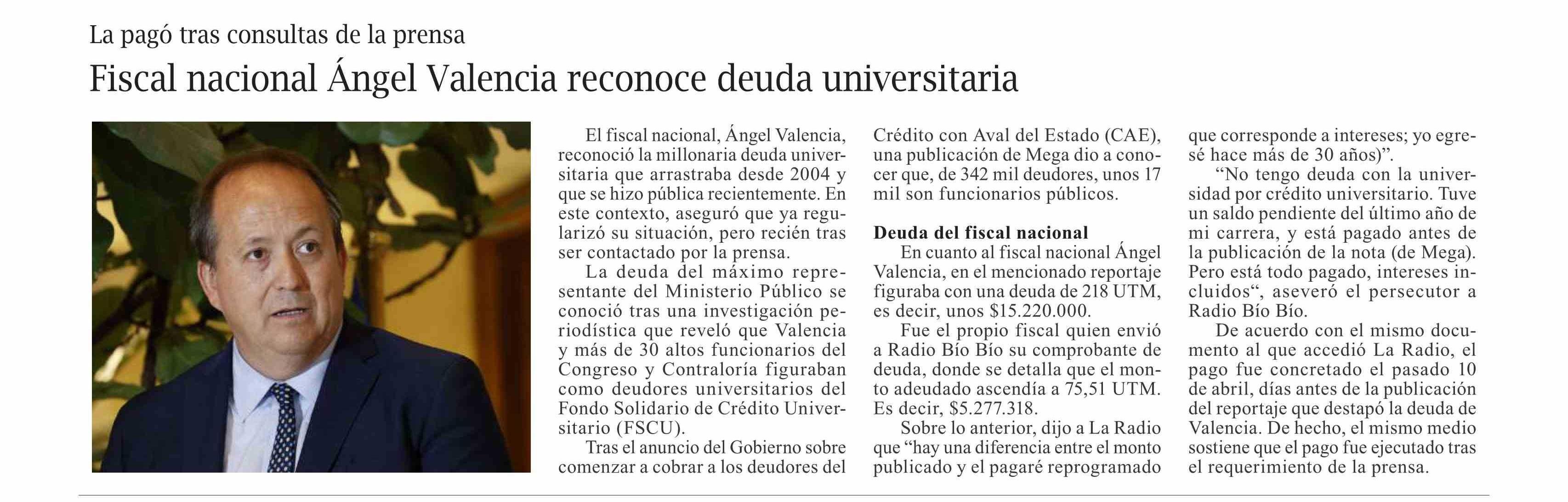 Título: Fiscal nacional Ángel Valencia reconoce deuda universitaria