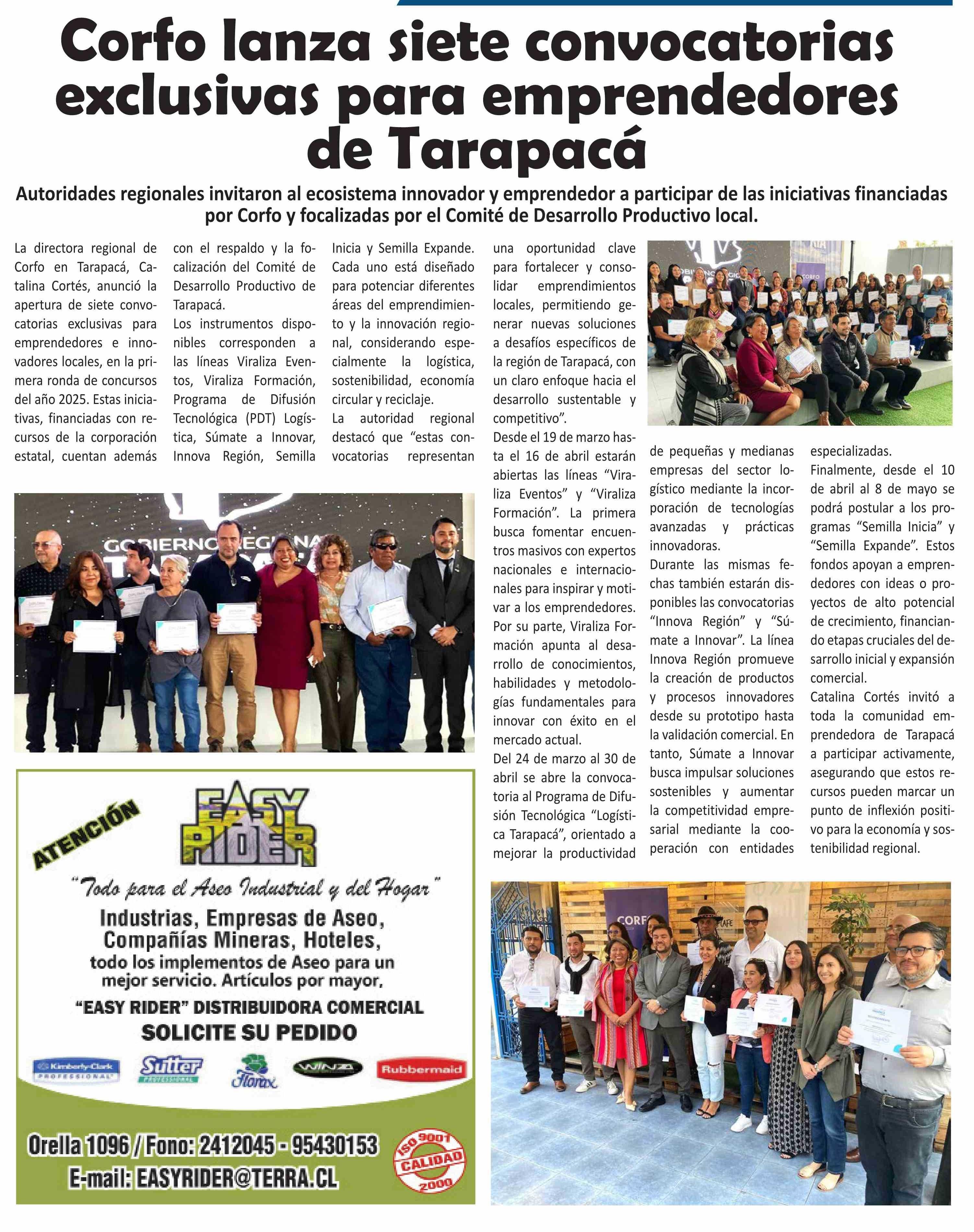 Corfo lanza siete convocatorias exclusivas para emprendedores de Tarapacá 19-03-2025 El Longino |