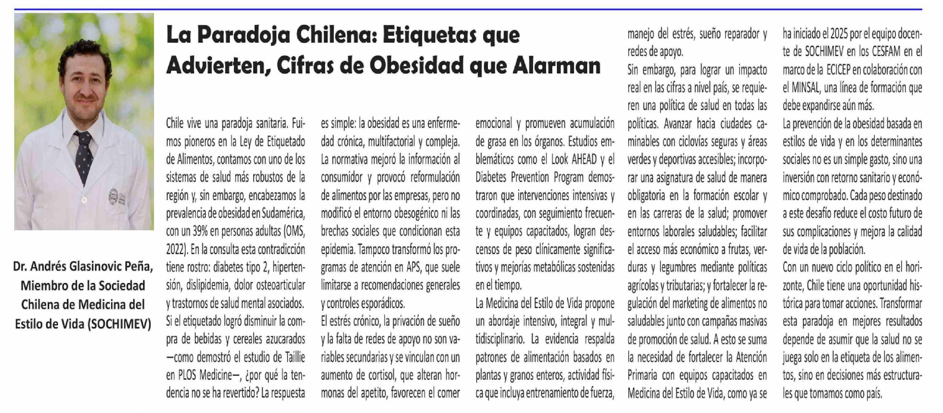 | Título: | Columnas de Opinión: La Paradoja Chilena: Etiquetas que Advierten, Cifras de Obesidad que Alarman |