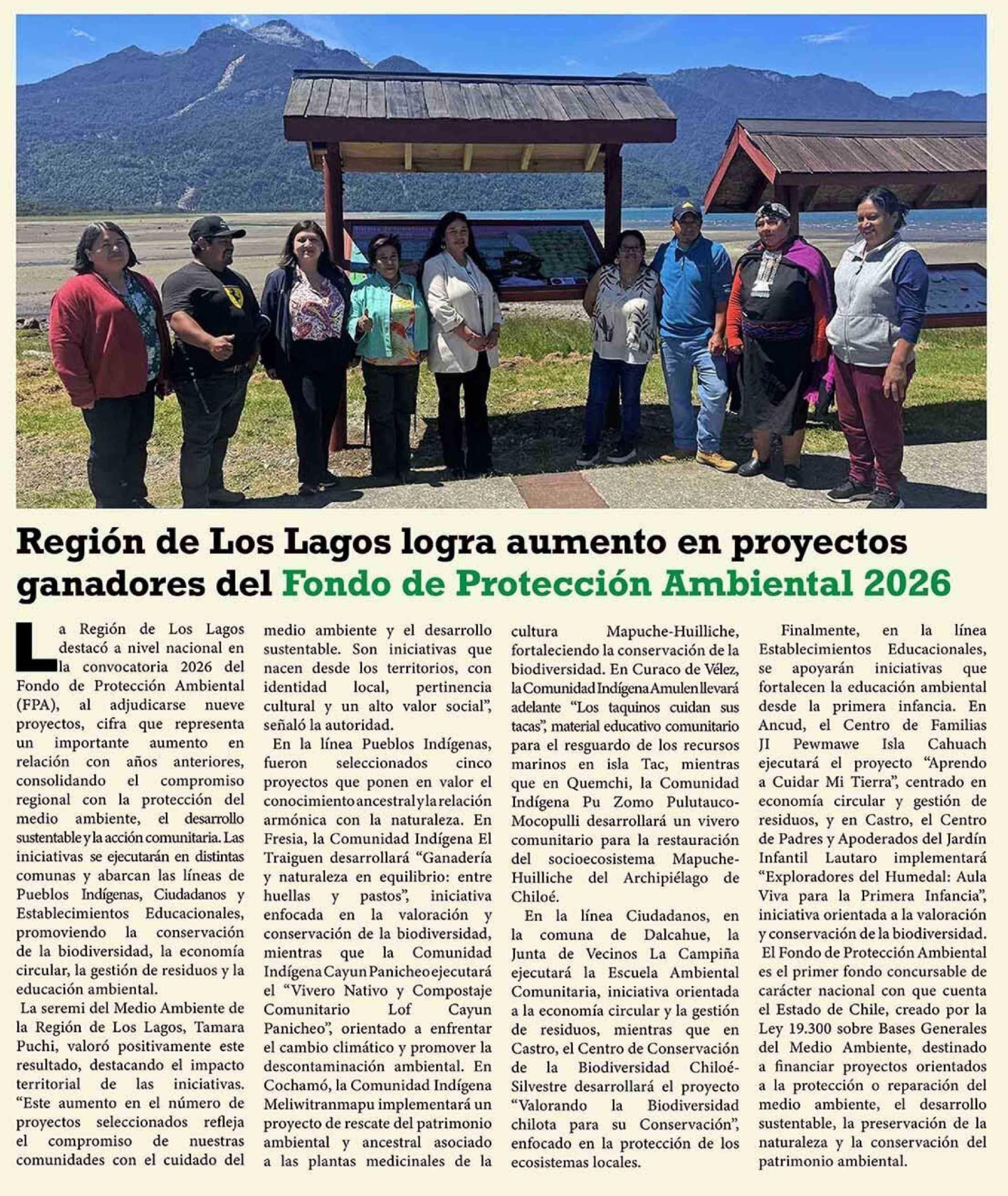 Región de Los Lagos logra aumento en proyectos ganadores del Fondo de Protección Ambiental 2026 04-02-2026 El Heraldo Austral |