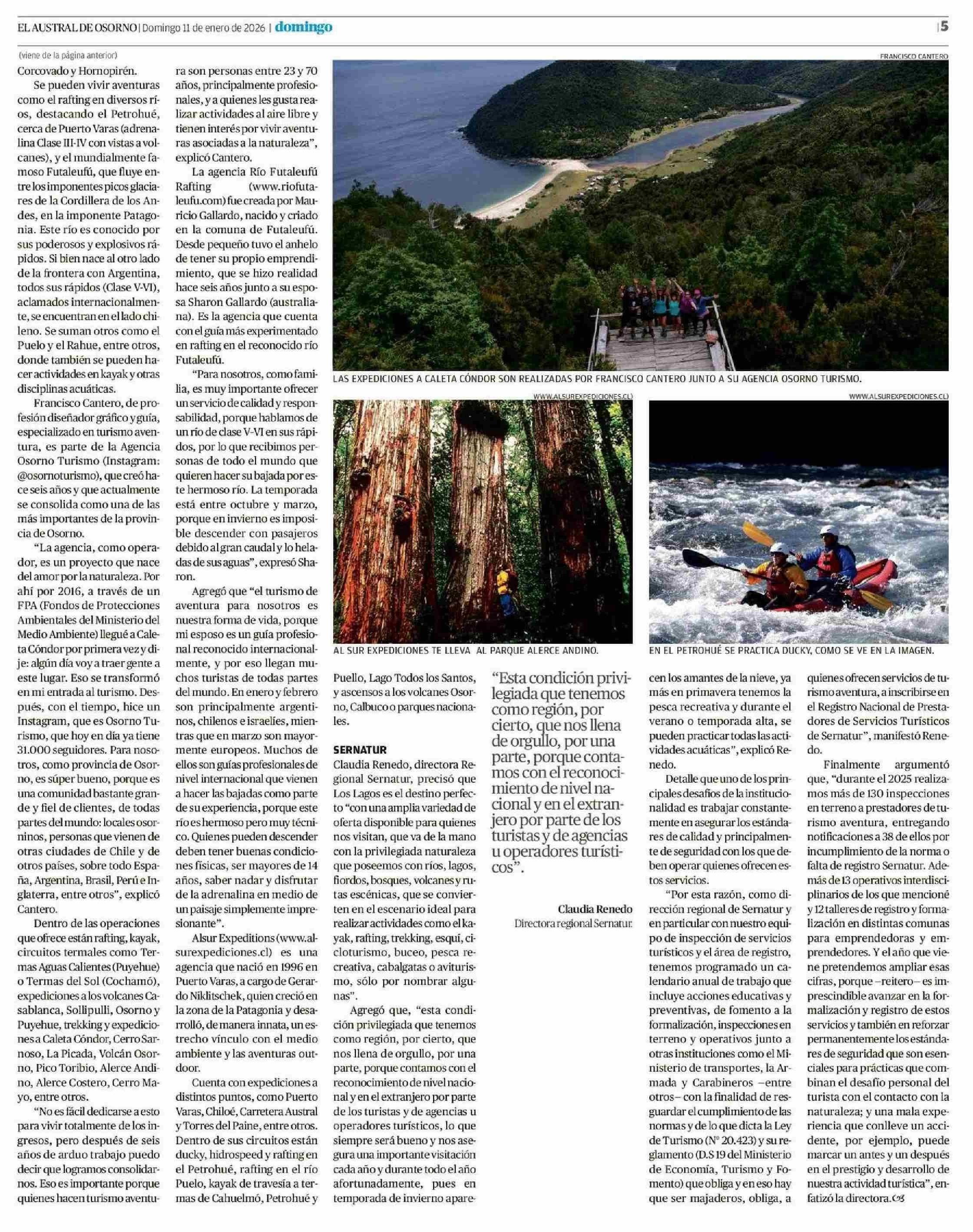 La mejor experiencia del mundo en turismo aventura se disfruta en la región 11-01-2026 El Austral de Osorno |