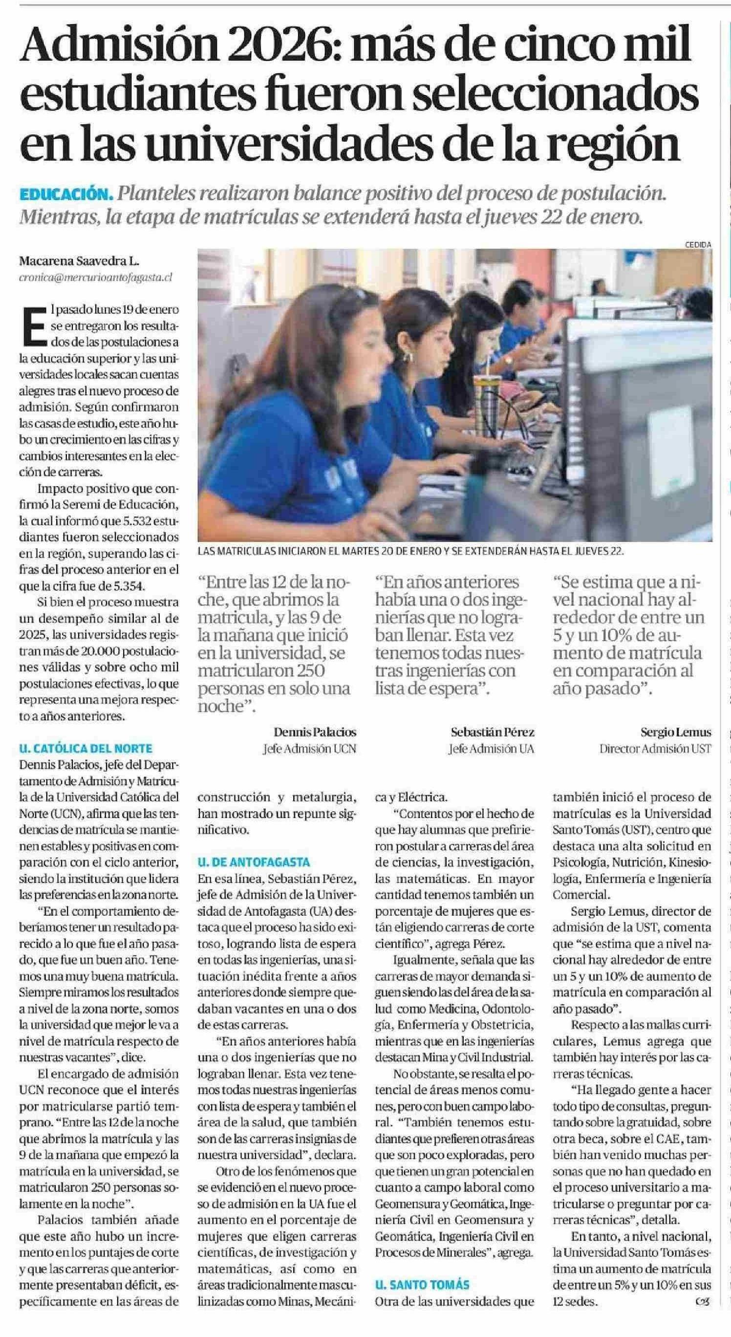 Título: Admisión 2026: más de cinco mil estudiantes fueron seleccionados en las universidades de la región
