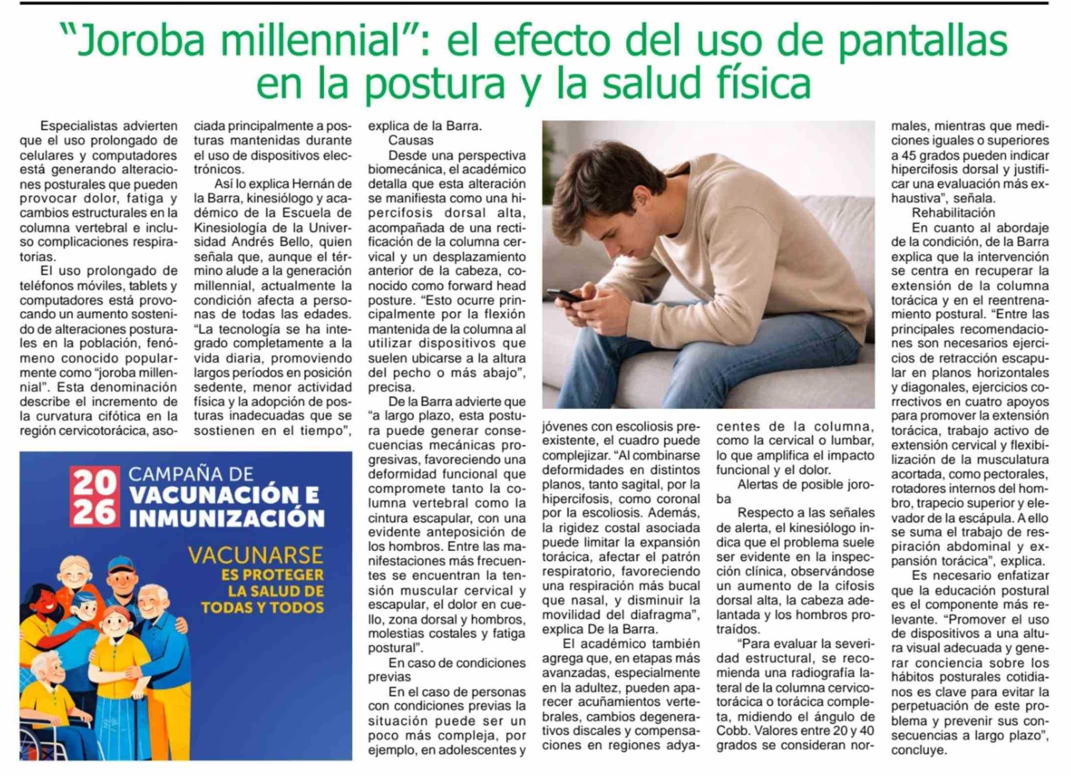 Título: "Joroba millennial": el efecto del uso de pantallas en la postura y la salud física