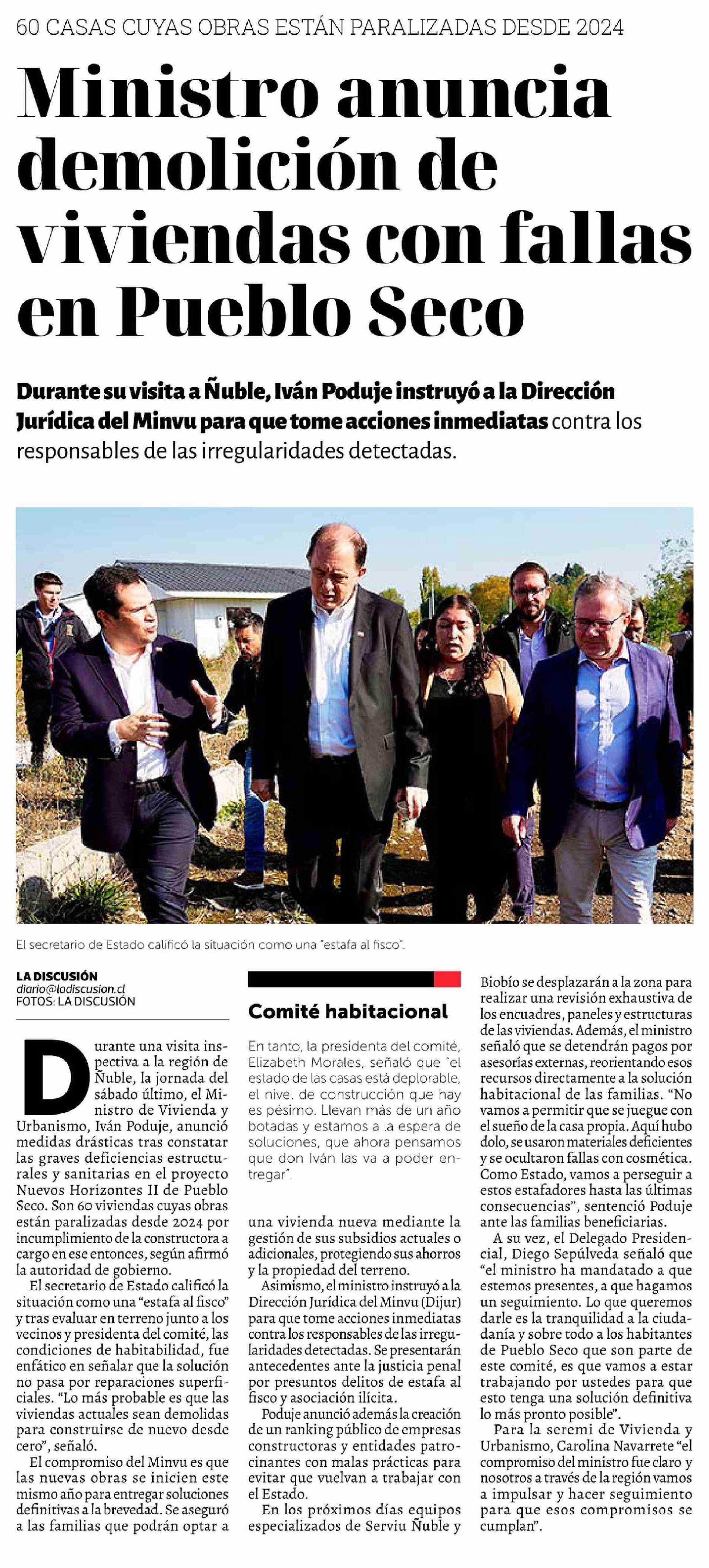 Título: Ministro anuncia demolición de viviendas con fallas en Pueblo Seco