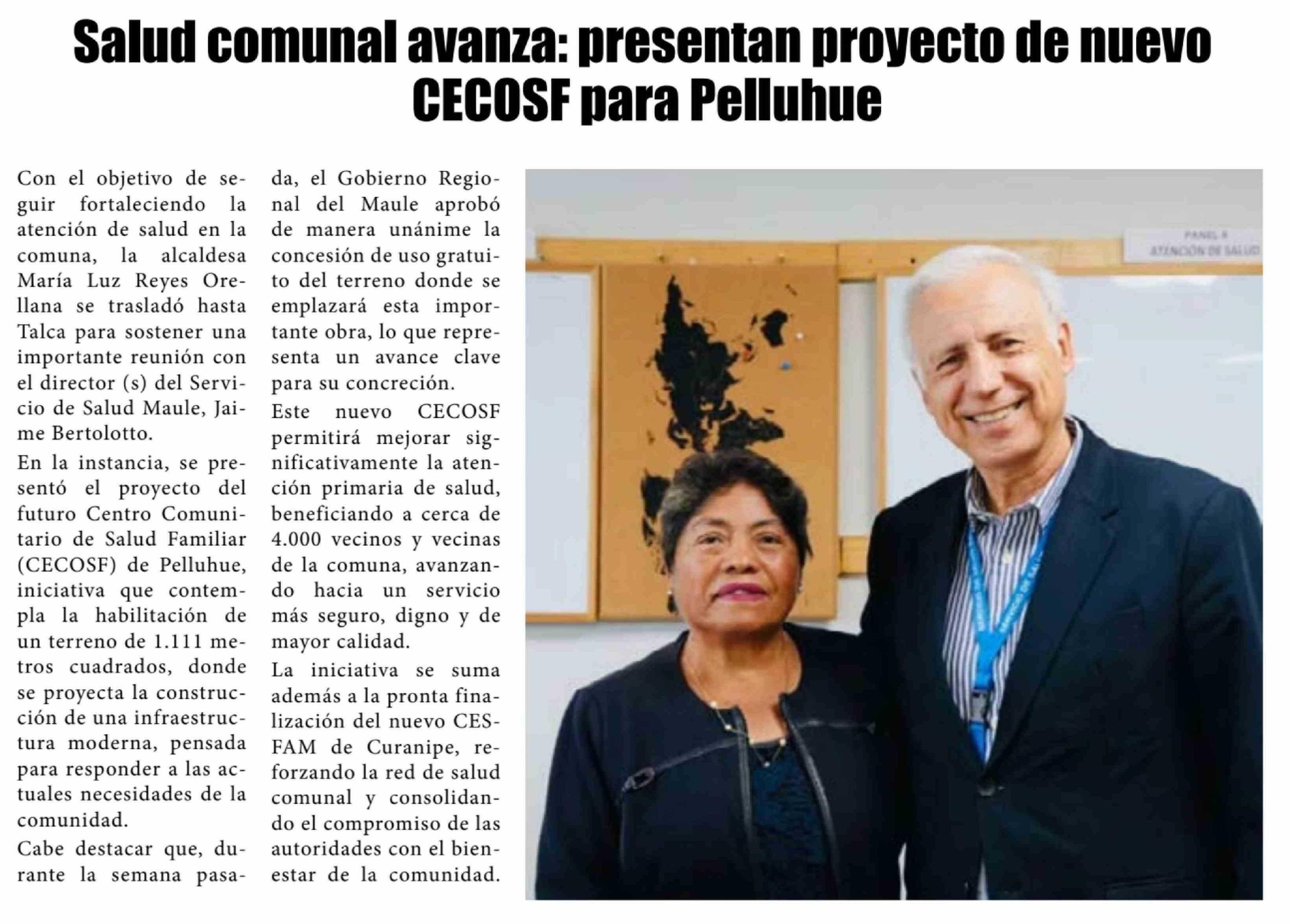 Título: Salud comunal avanza: presentan proyecto de nuevo CECOSF para Pelluhue