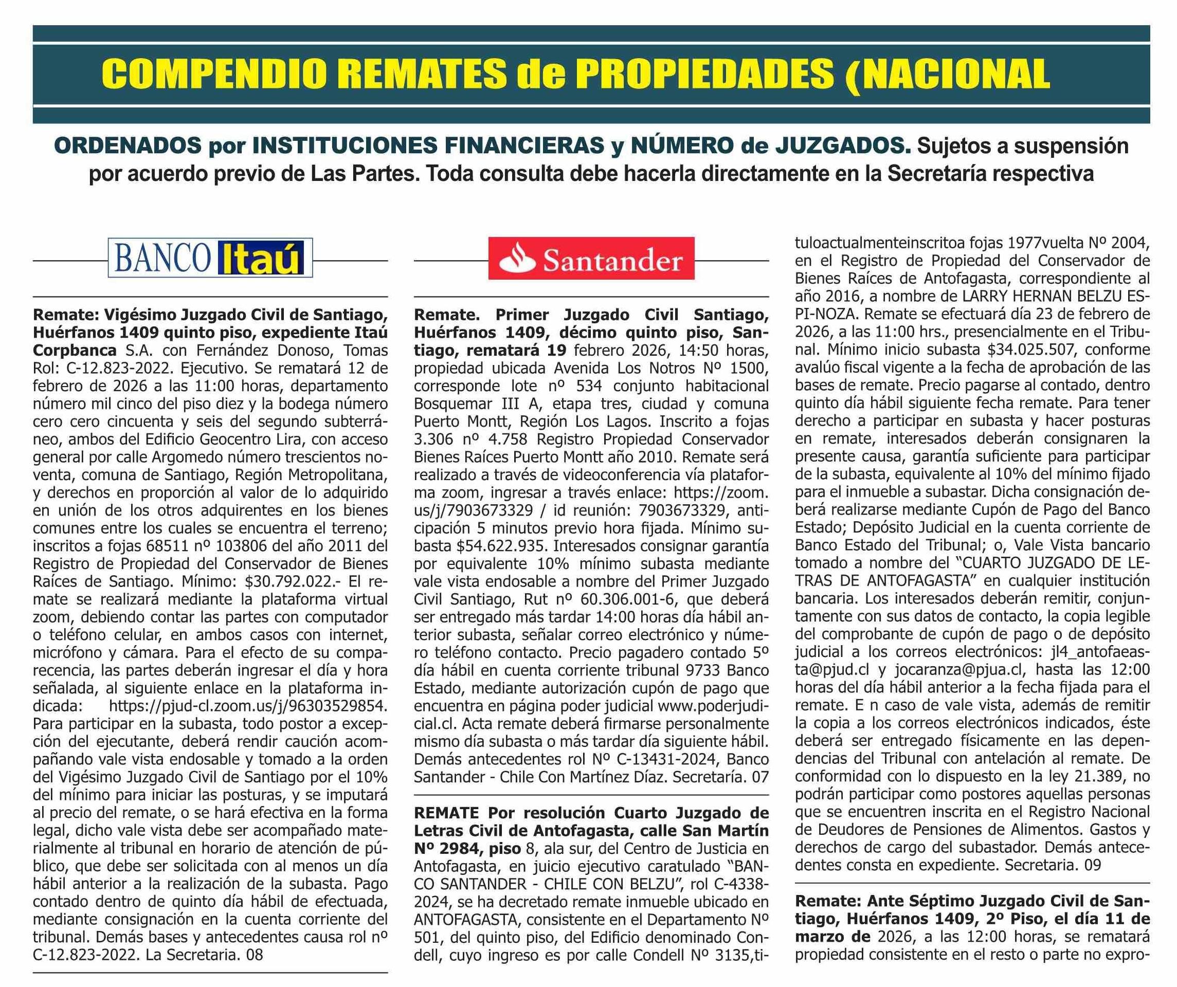 COMPENDIO REMATES de PROPIEDADES (NACIONAL