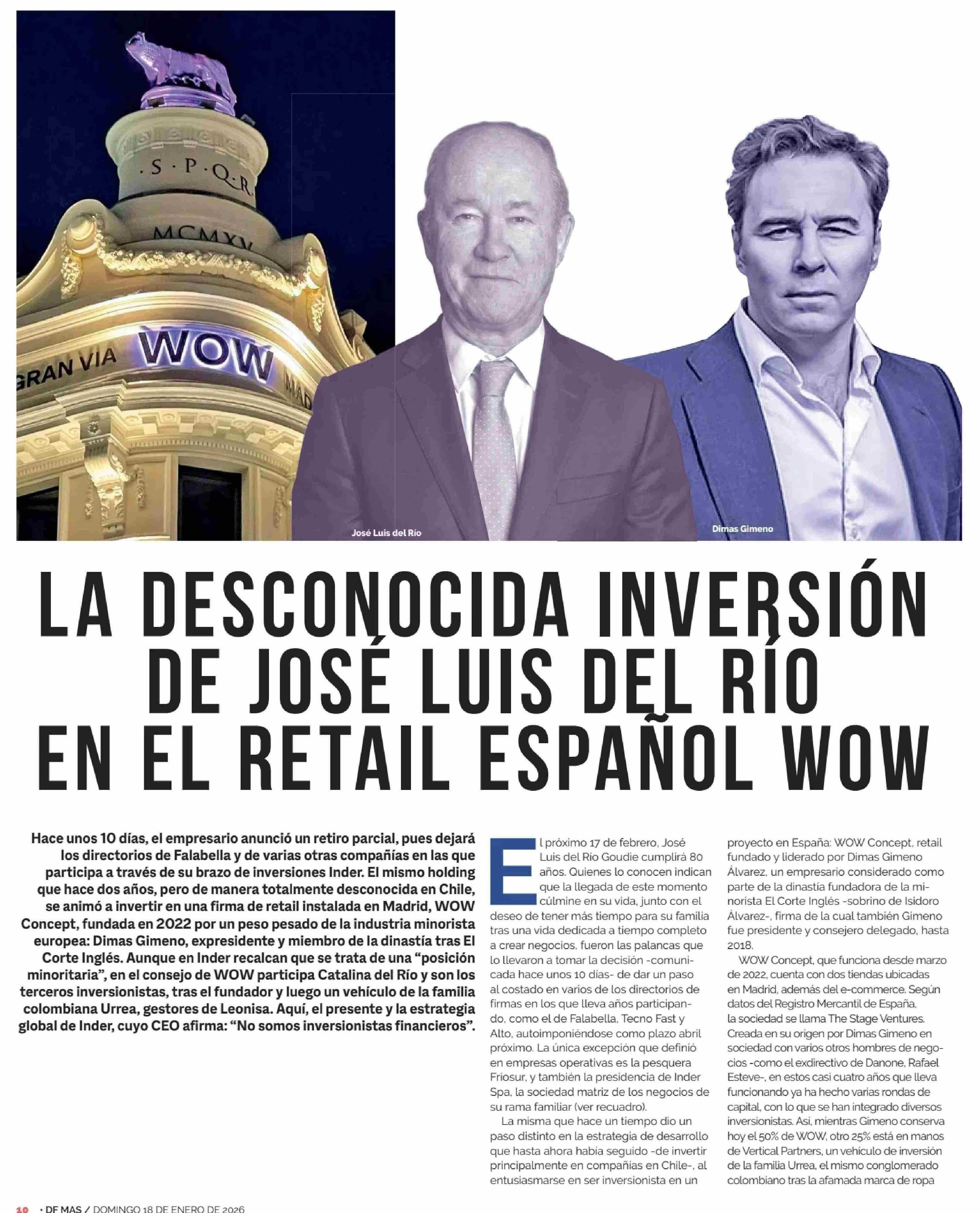 LA DESCONOCIDA INVERSIÓN DE JOSE LUIS DEL RIO EN EL RETAIL ESPANOL WOW 18-01-2026 Diario Financiero |