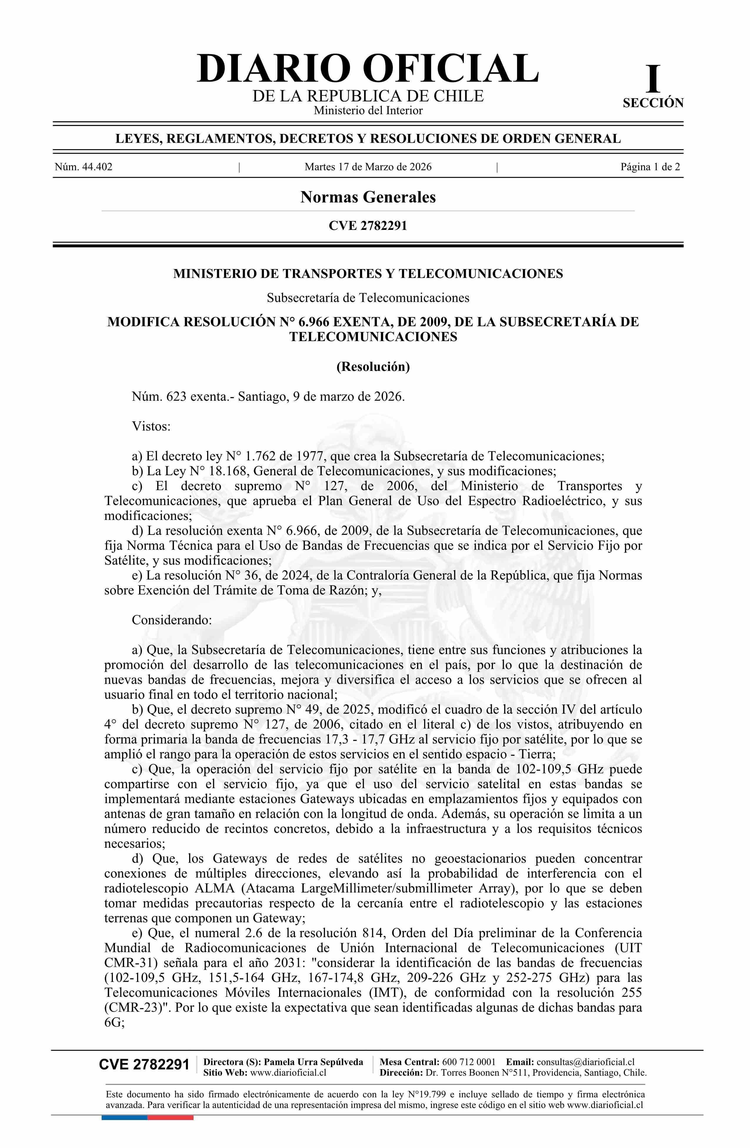 Título: Resolución exenta número 623, de 2026.- Modifica resolución N° 6.966 exenta, de 2009
