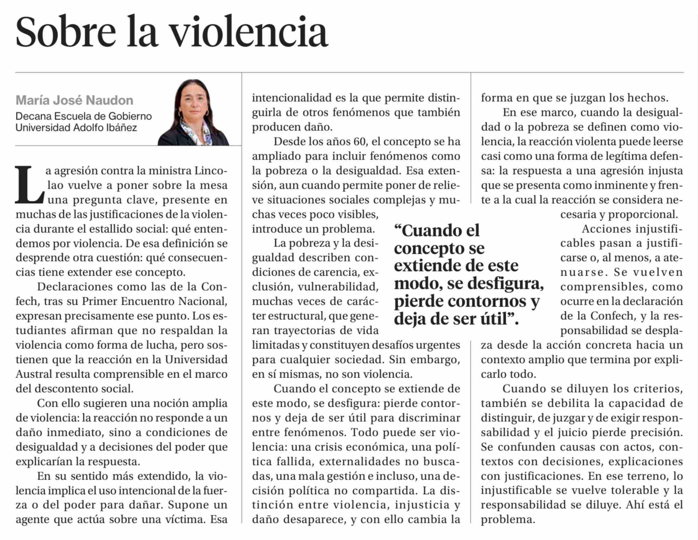 Columnas de Opinión: Sobre la violencia 15-04-2026 La Segunda |