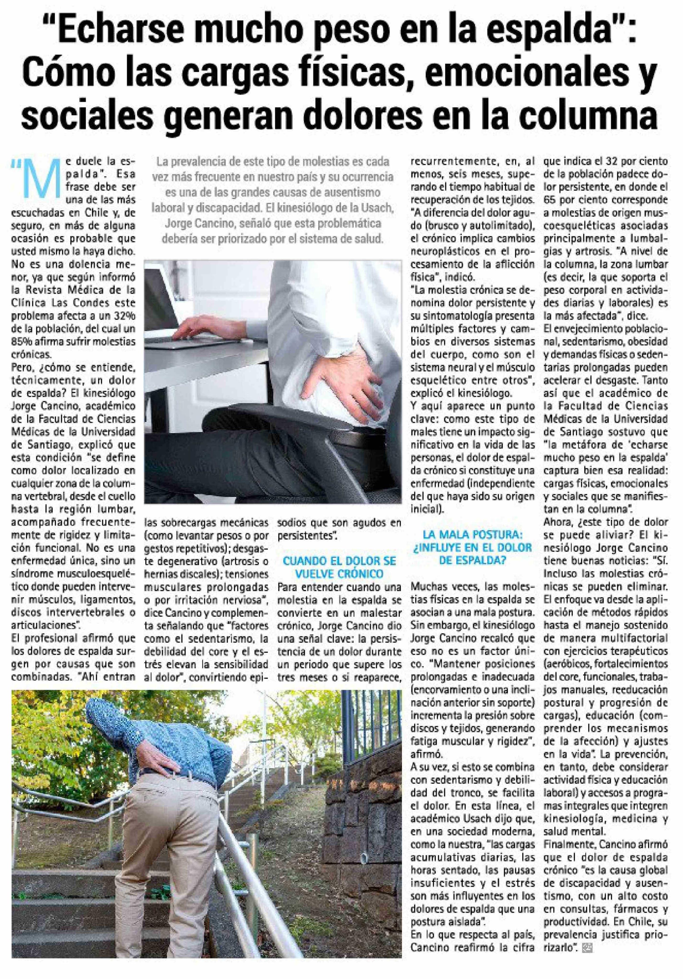 "Echarse mucho peso en la espalda": Cómo las cargas físicas, emocionales y sociales generan dolores en la columna 23-03-2026 El Rancagüino |
