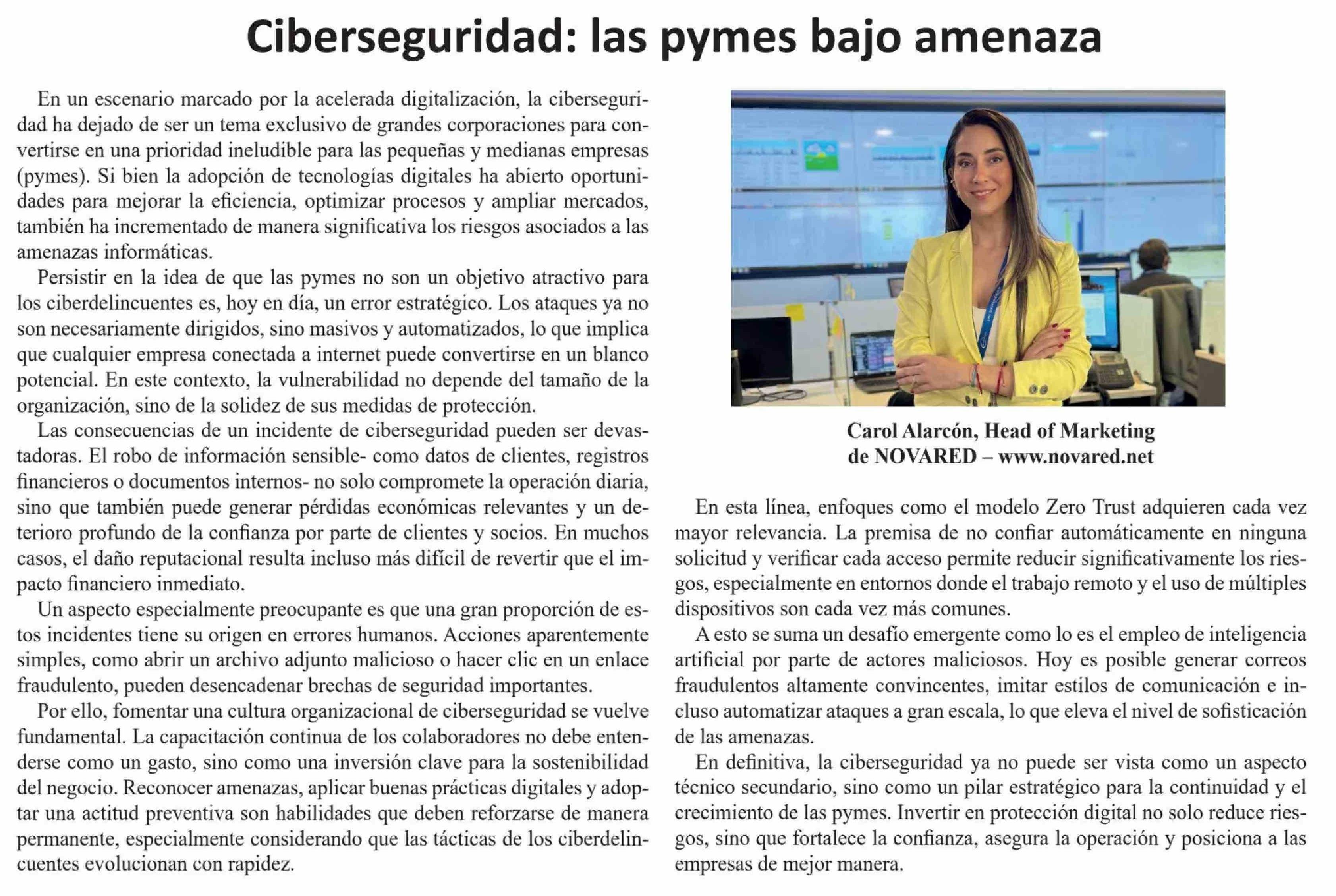Columnas de Opinión: Ciberseguridad: las pymes bajo amenaza 16-04-2026 El Heraldo |