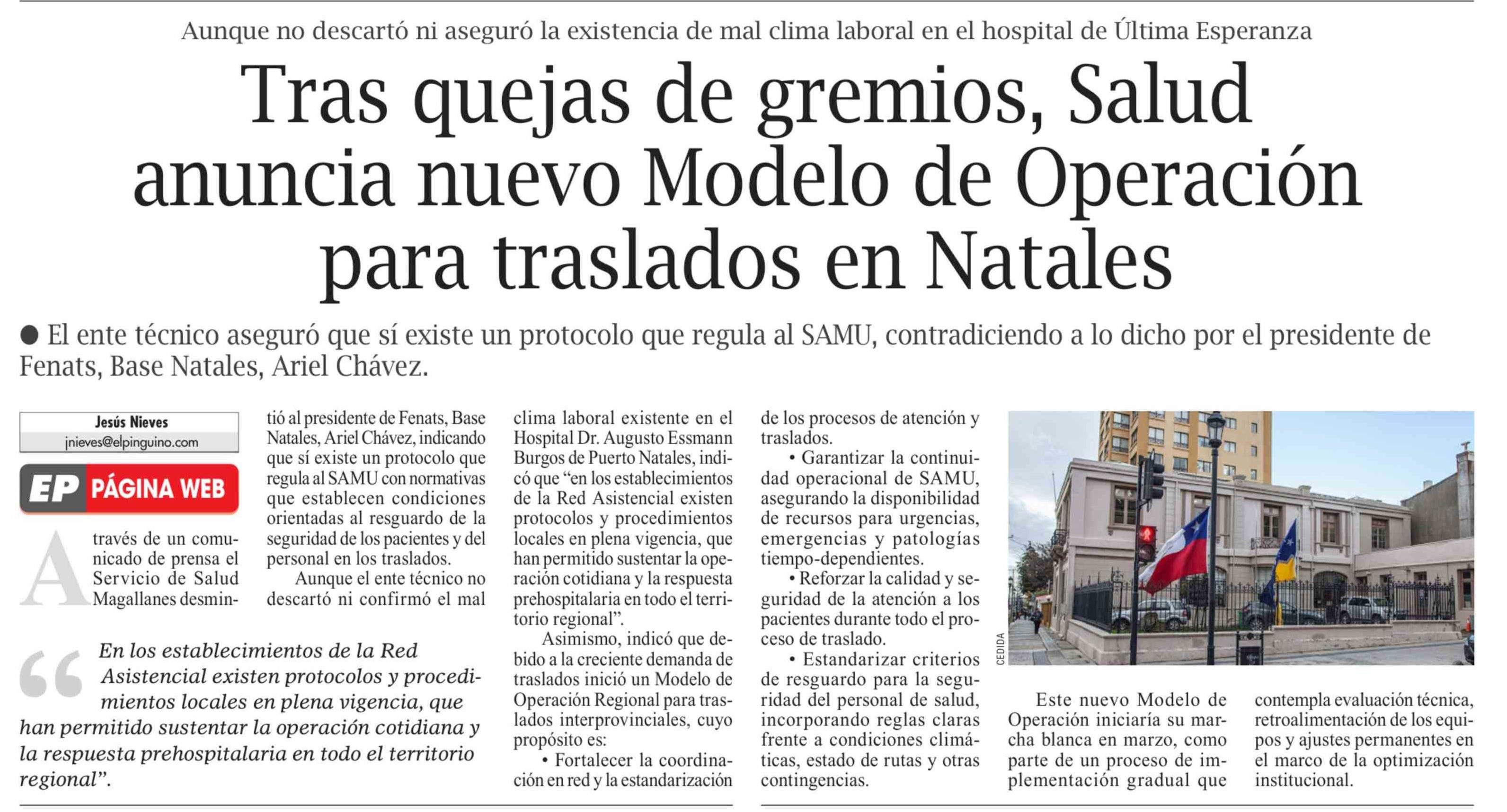 Título: Tras quejas de gremios, Salud anuncia nuevo Modelo de Operación para traslados en Natales
