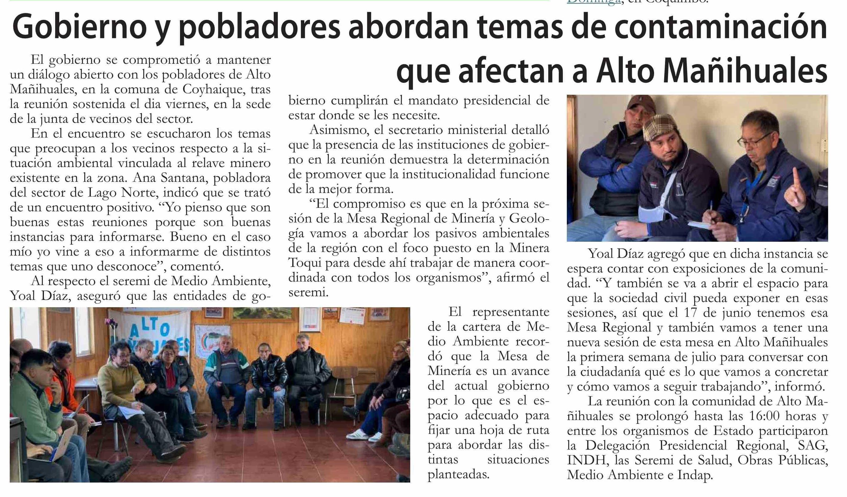 | Título: | Gobierno y pobladores abordan temas de contaminación que afectan a Alto Mañihuales |