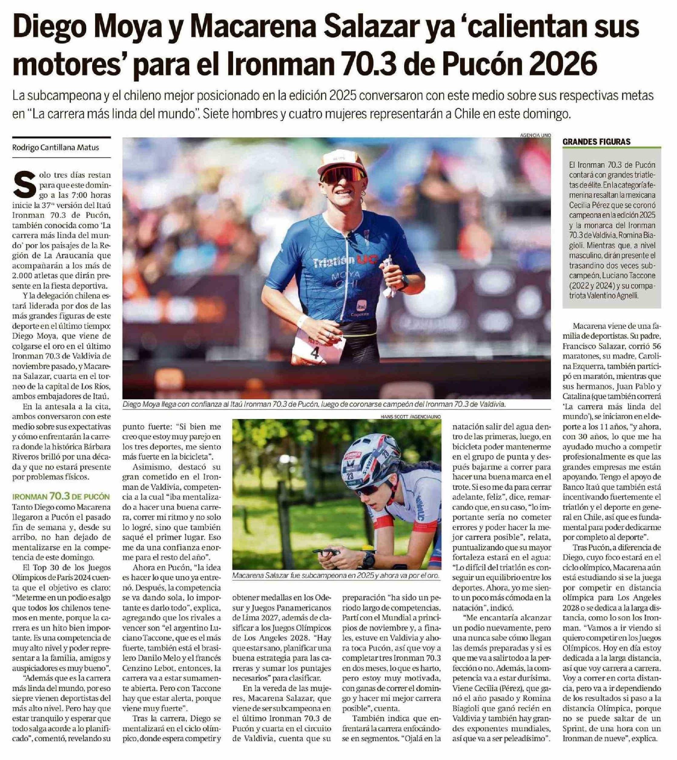 | Título: | Diego Moya y Macarena Salazar ya 'calientan sus motores' para el Ironman 70.3 de Pucón 2026 |